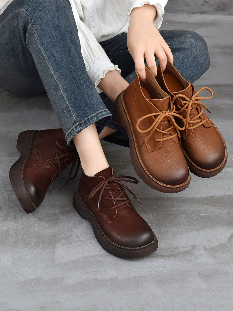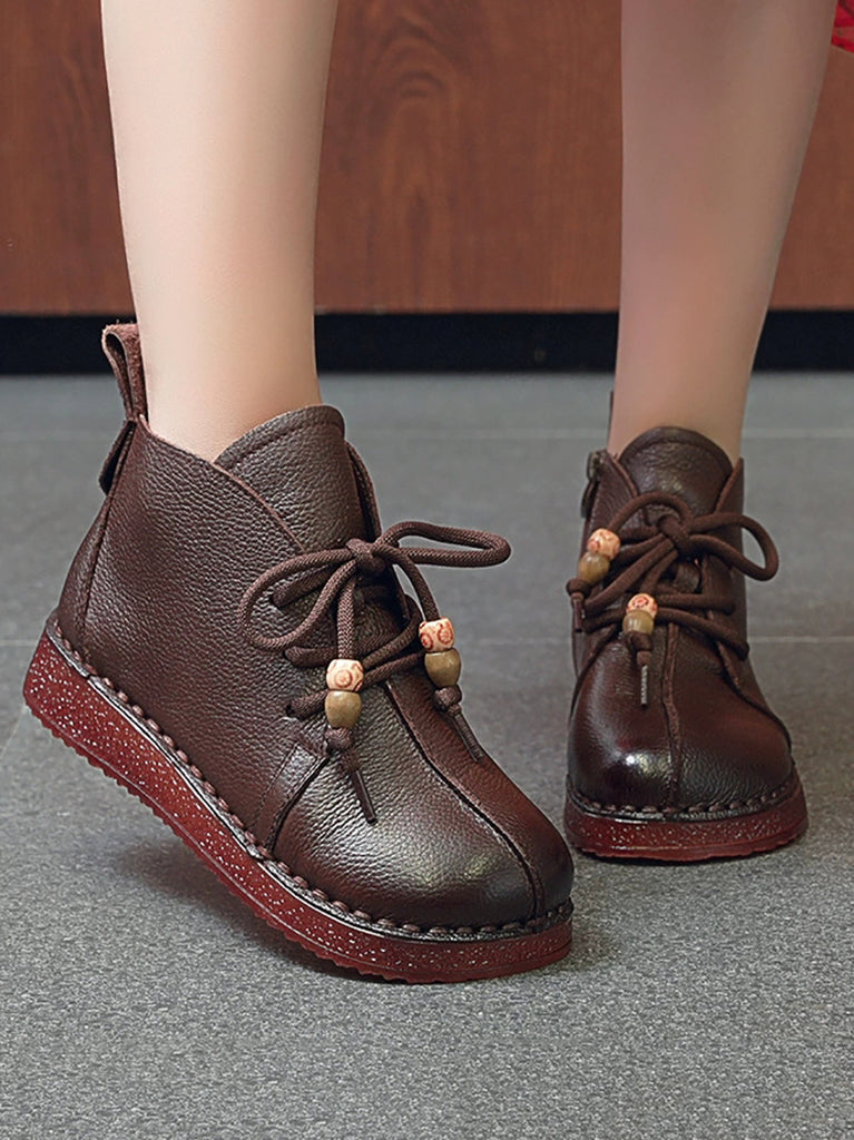 Women Vintage Winter Genuine Leather Ankle Boots
