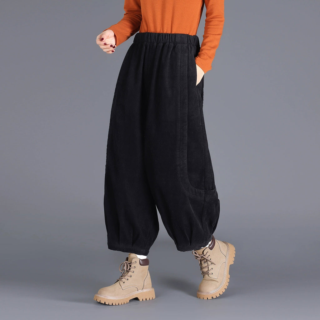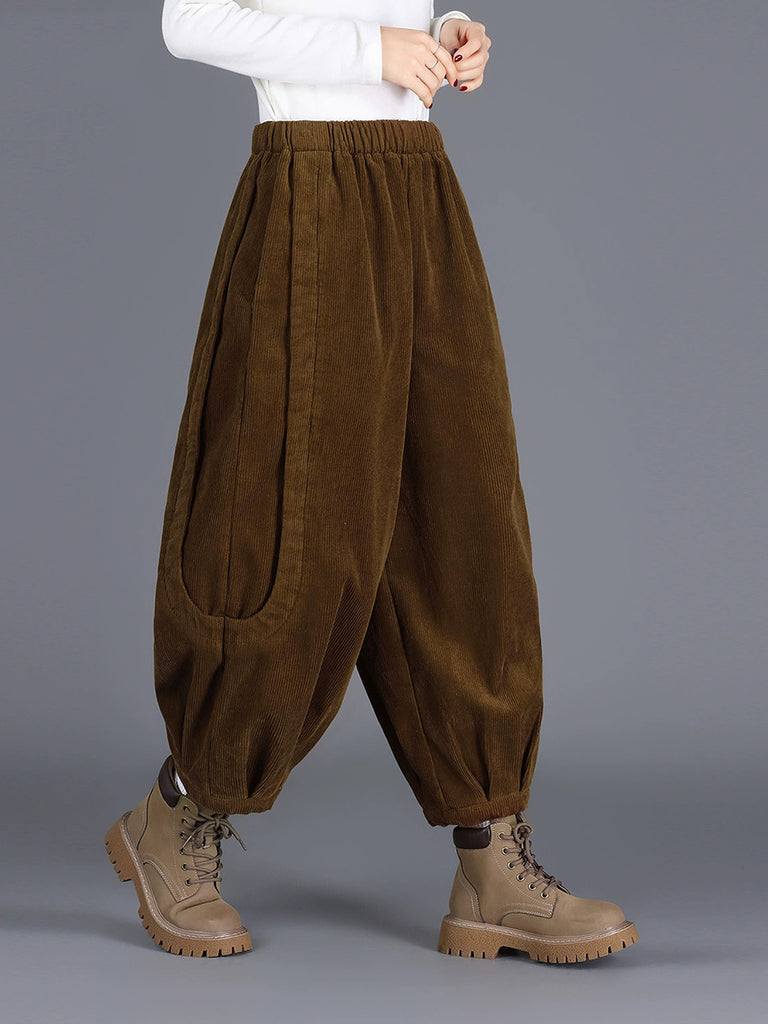 Women Winter Casual Pure Color Corduroy Harem Pants