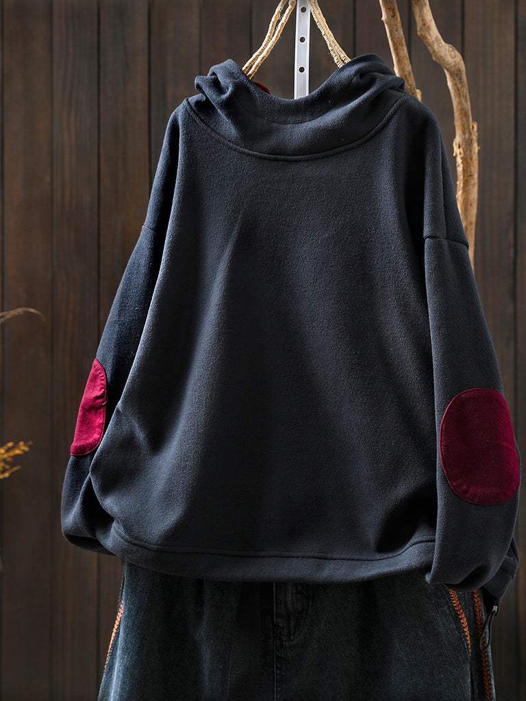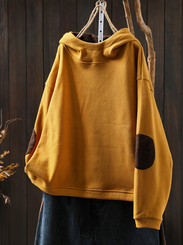 Women Casual Autumn Colorblock Cotton Fleece-lined Hoodie