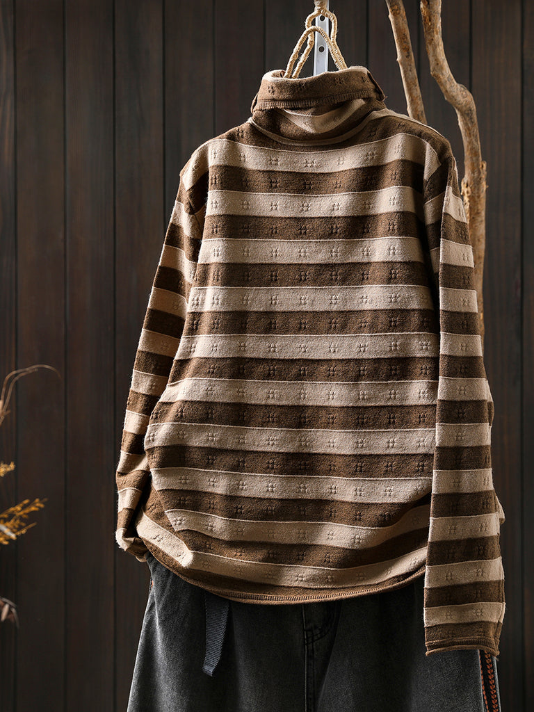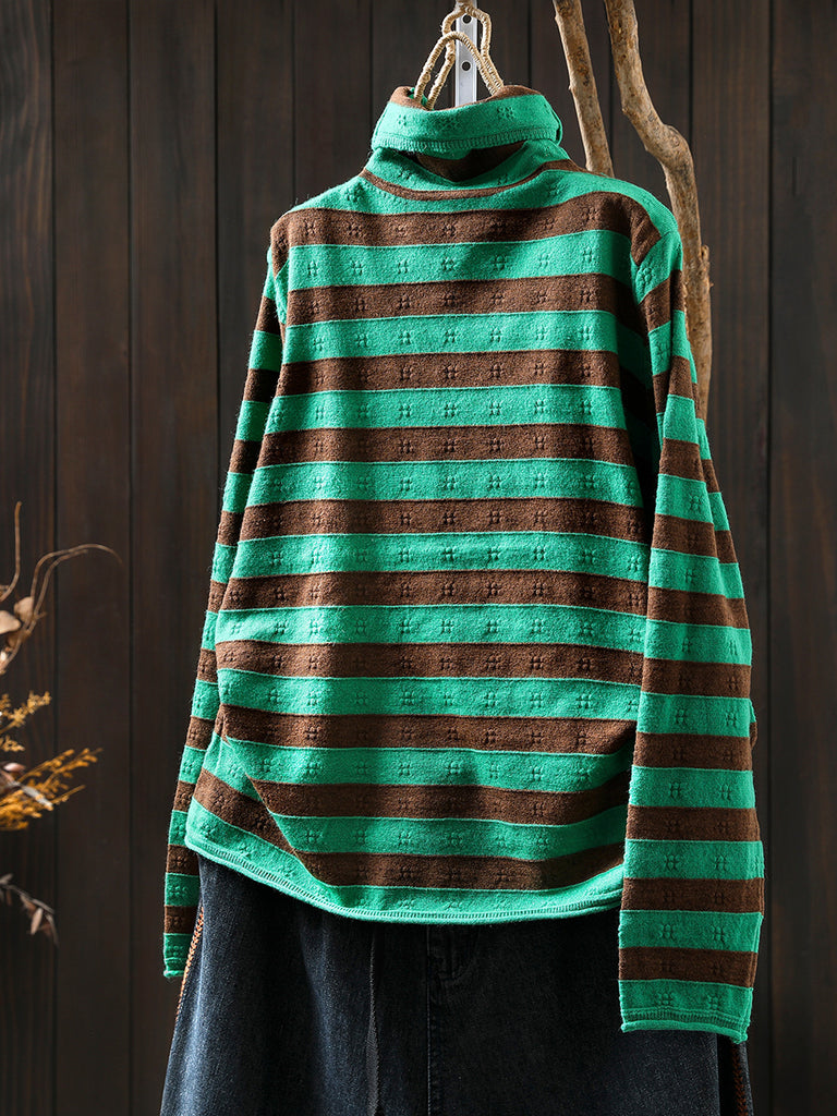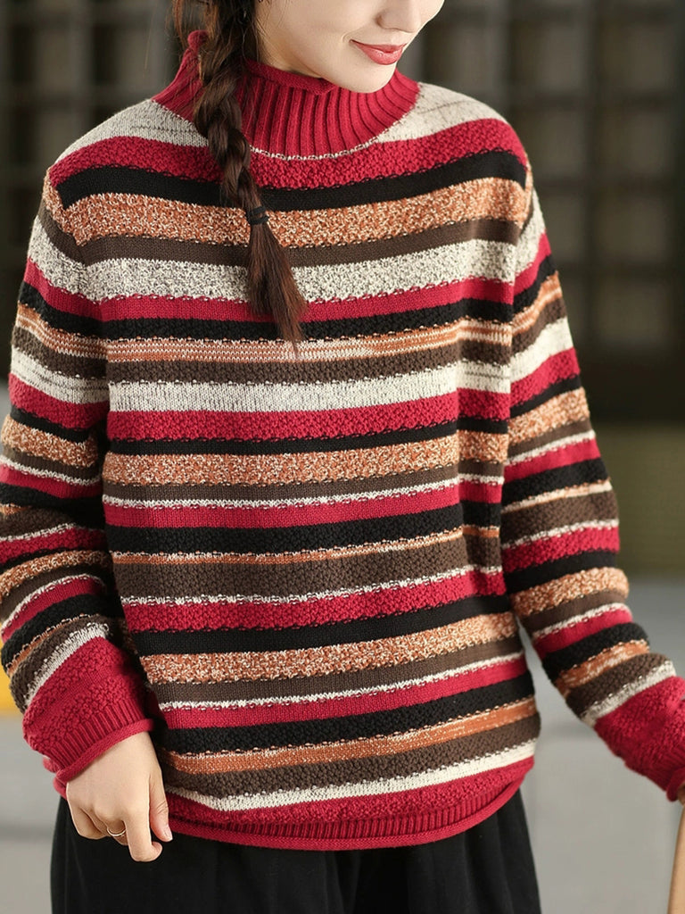 Women Vintage Autumn Stripe Half-Turtleneck Sweater
