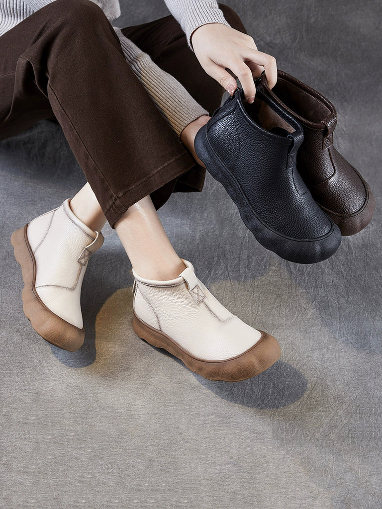Women Vintage Genuine Leather Spliced Low Heel Boots