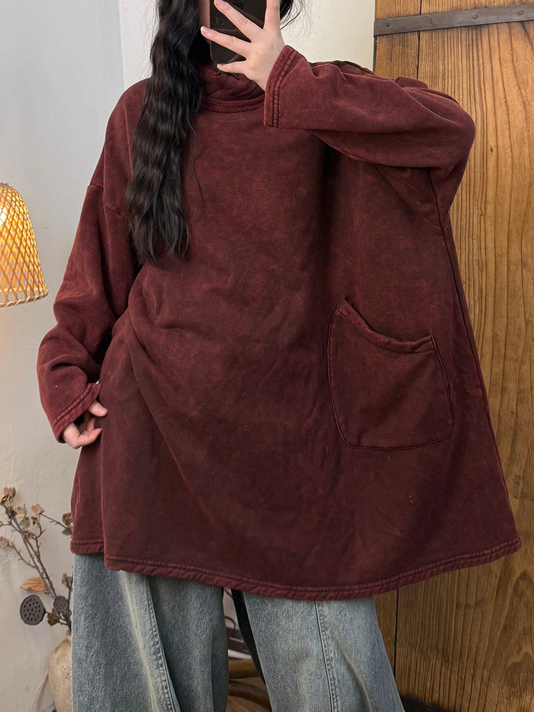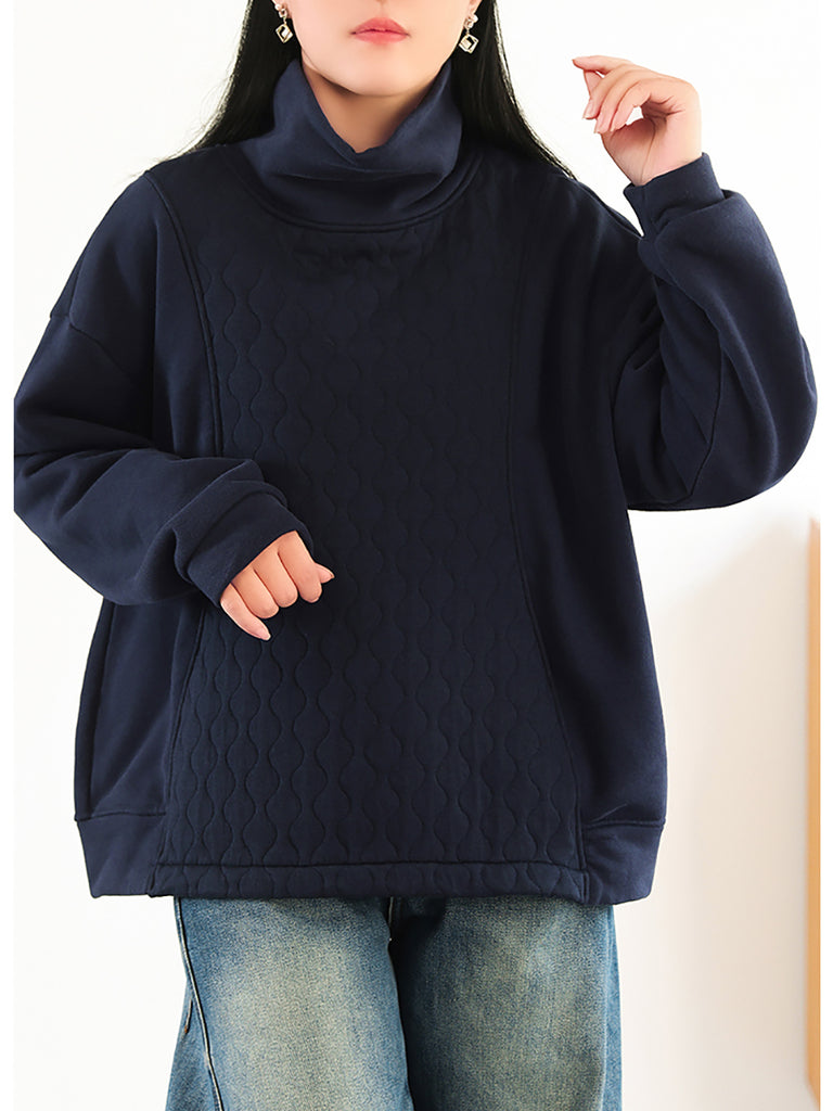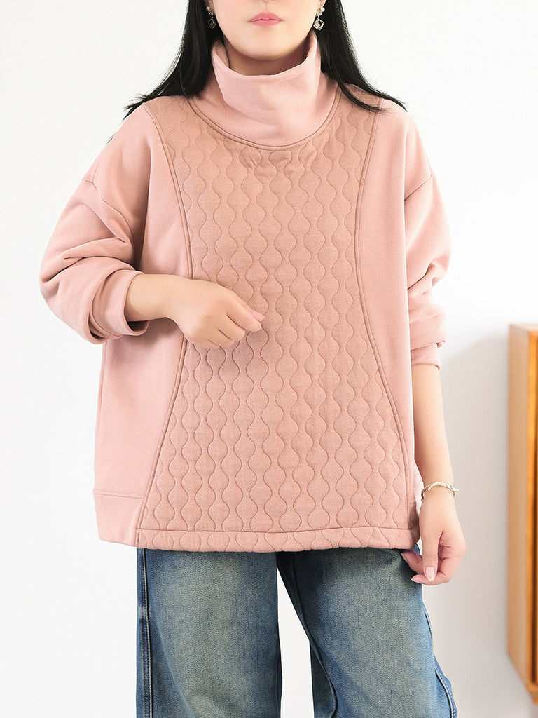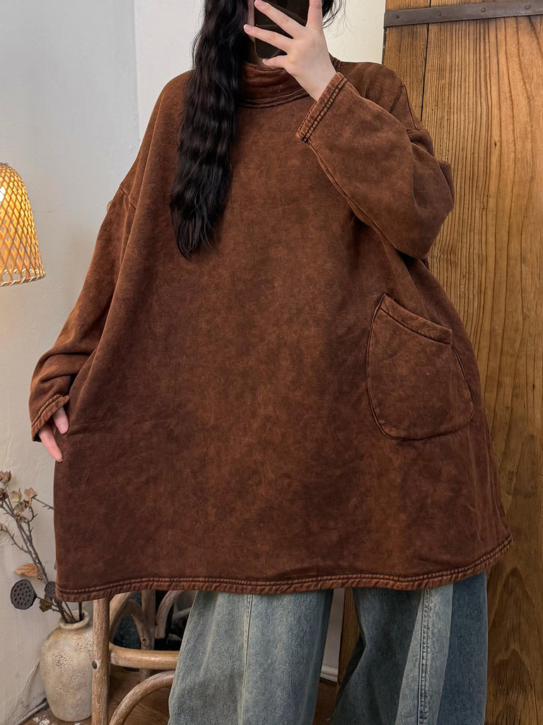 Women Vintage Autumn Pure Color Cotton Turtleneck Blouse