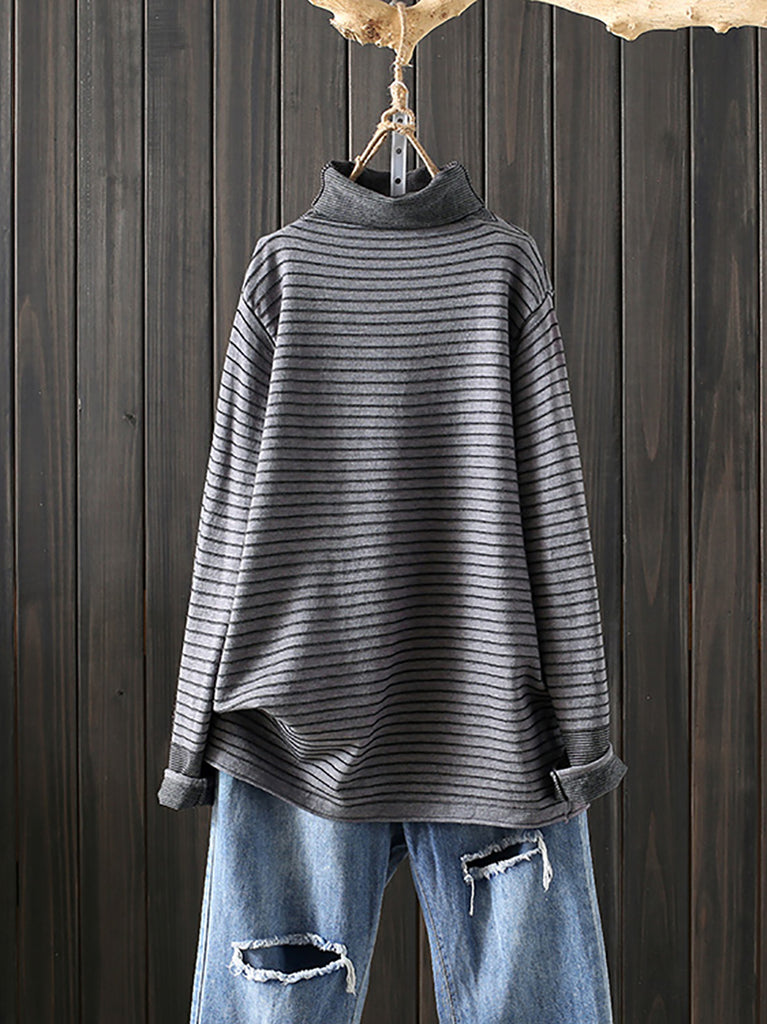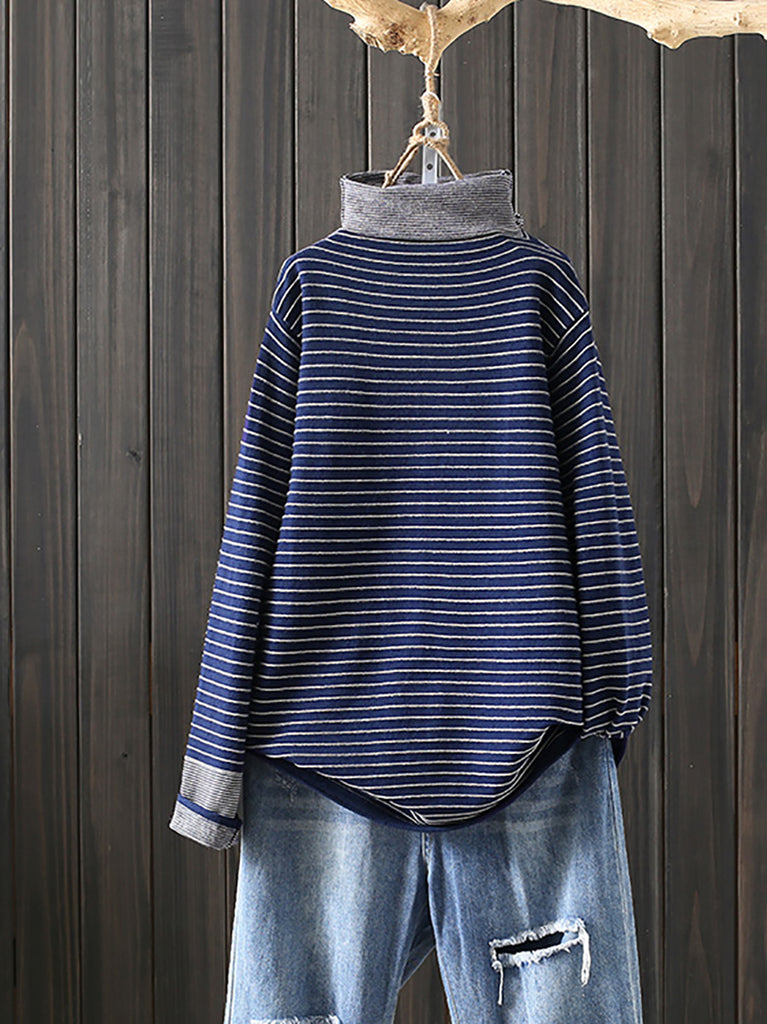 Women Casual Winter Stripe Turtleneck Blouse