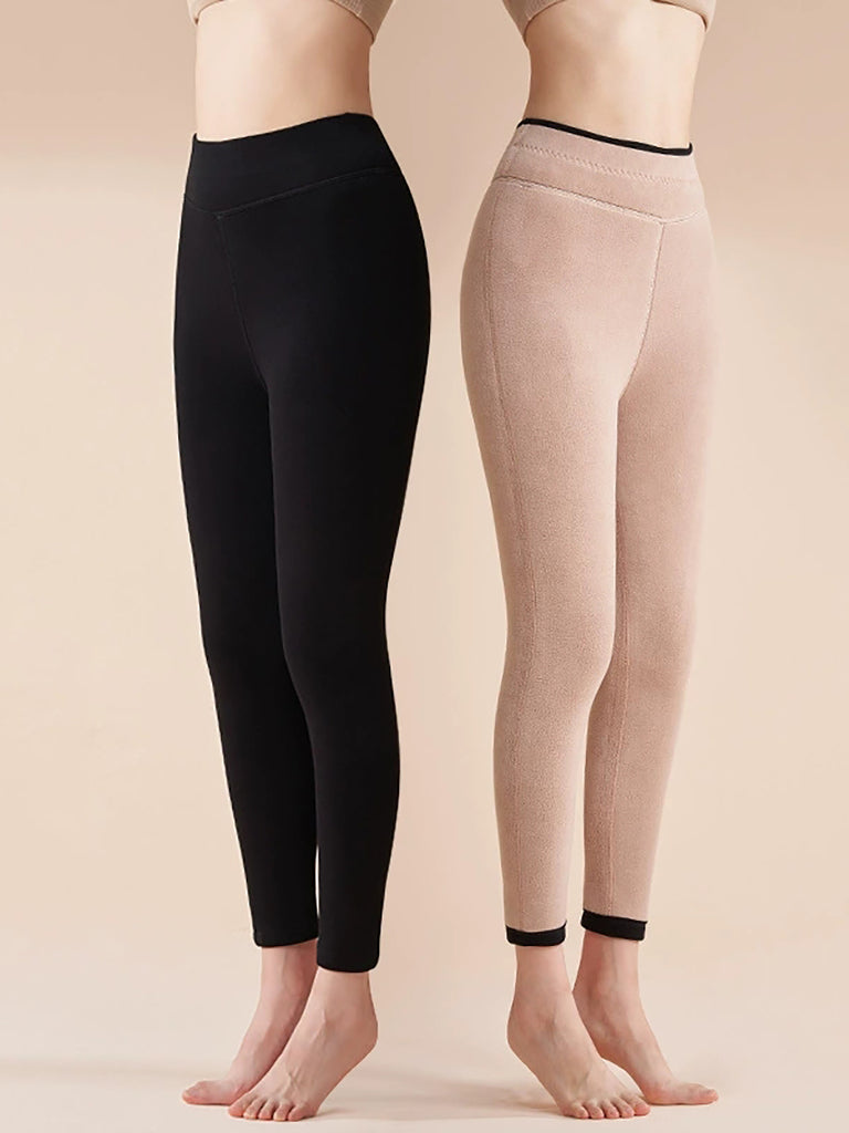 Women Autumn Warm Pure Color Fleece-lined Leggings
