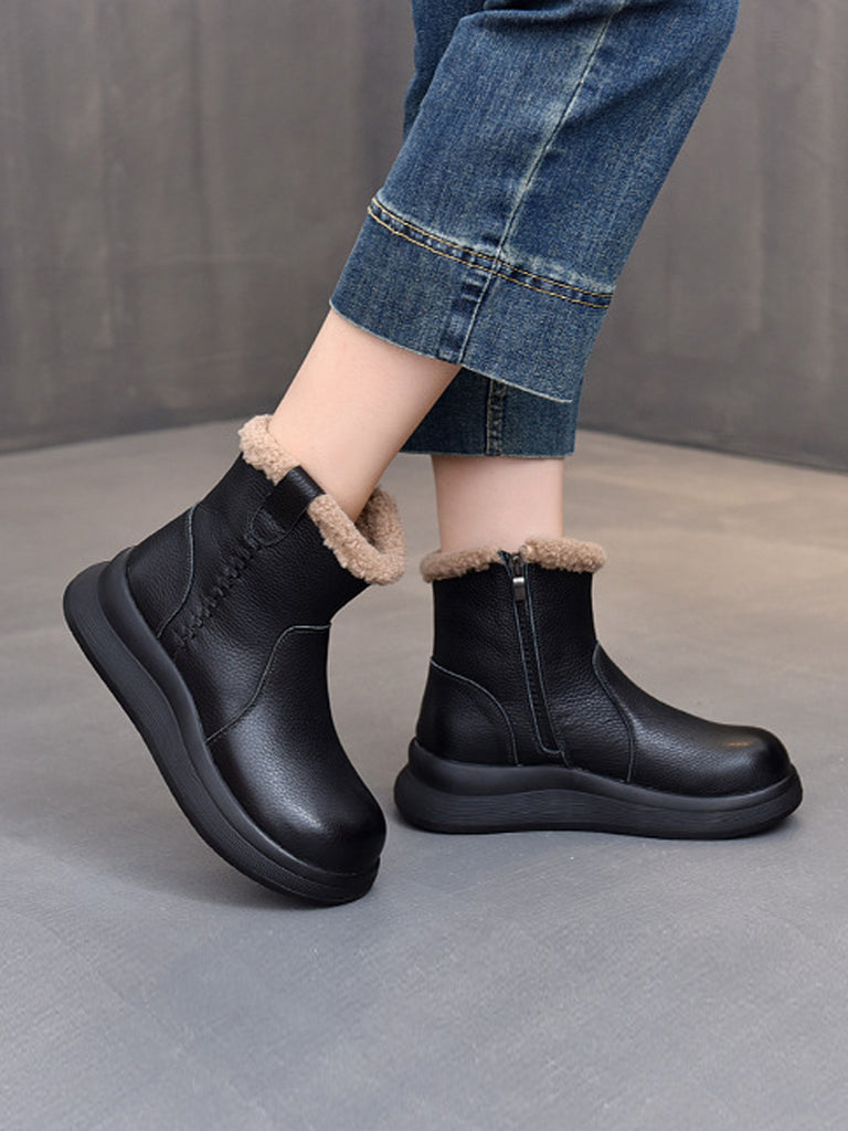 Women Winter Genuine Leather Fleece-lined Ankle Boots