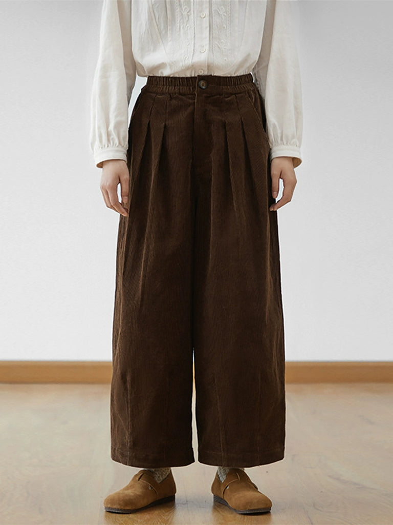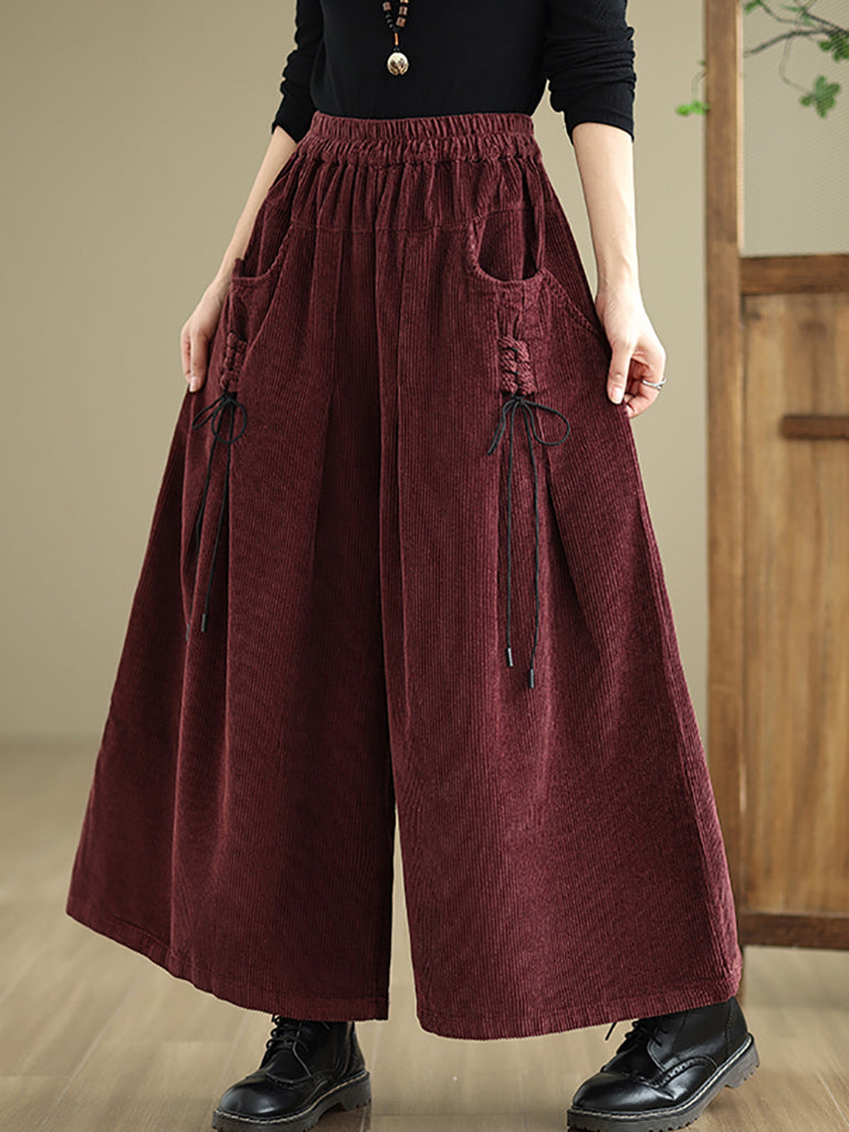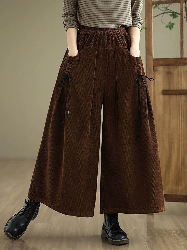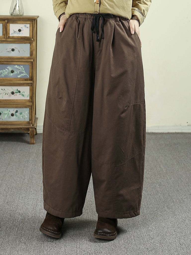 Women Winter Vintage Pure Color Fleece-lined Wide-leg Pants