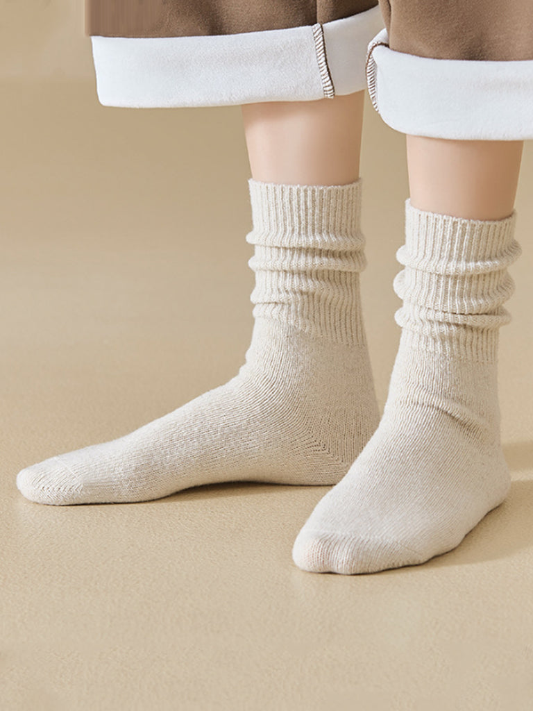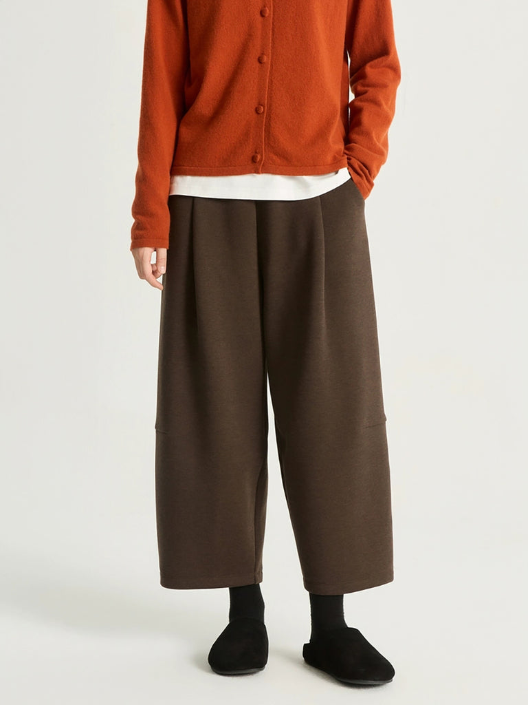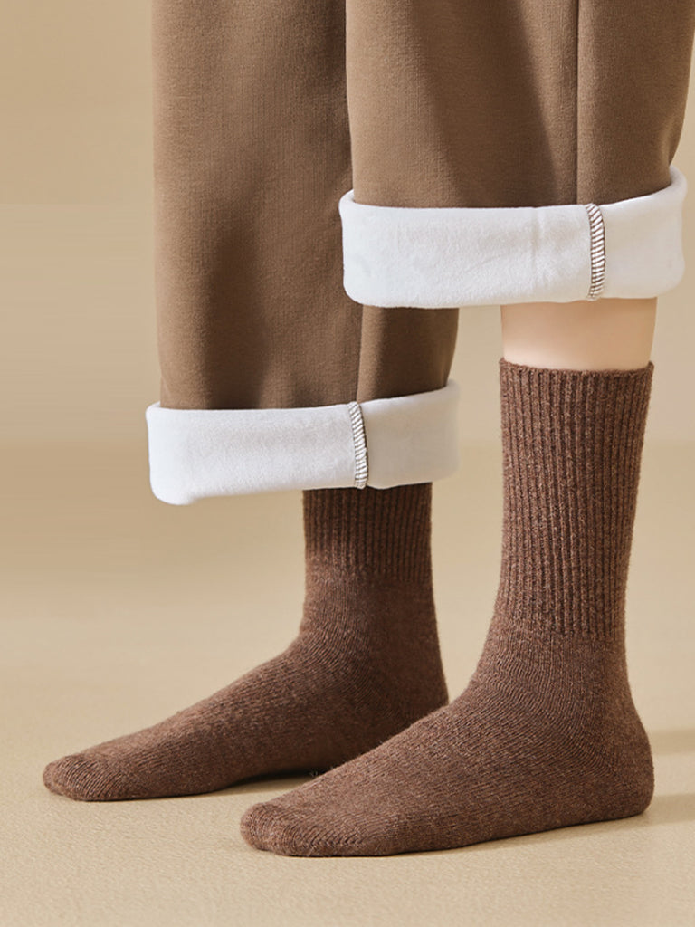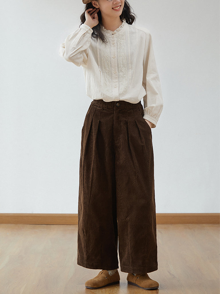 Women Winter Vintage Pure Color Fleece-lined Wide-leg Pants