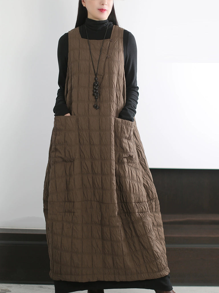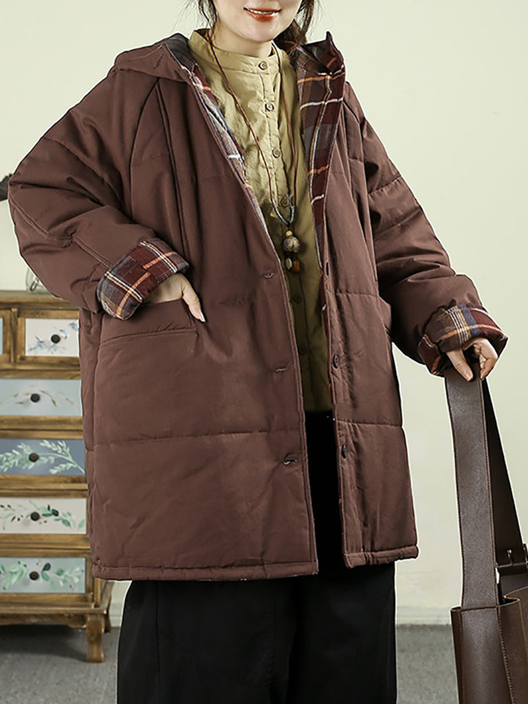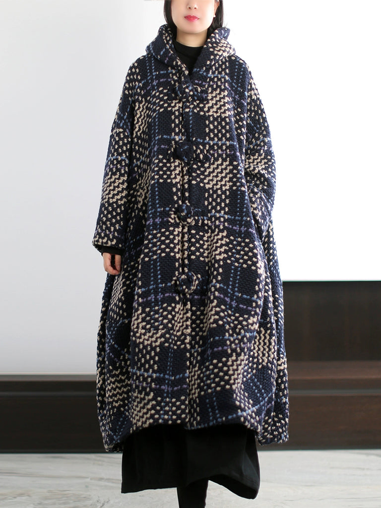 Women Vintage Winter Plaid O-Neck Padded Coat