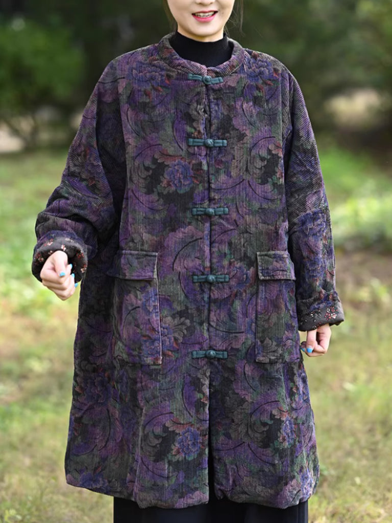 Women Vintage Winter Flower Stand Collar Padded Coat