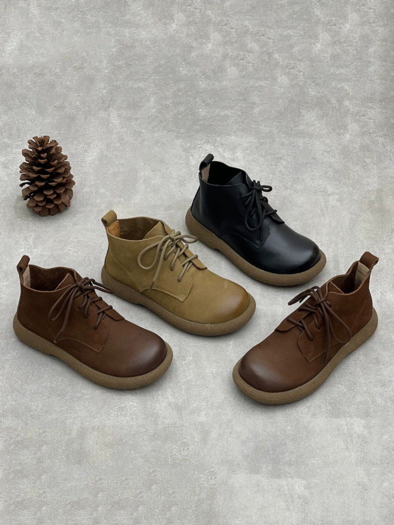 Women Vintage Genuine Leather Fleece-lined Platform Boots