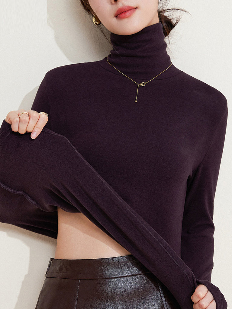 Women Autumn Pure Color Wool Turtleneck Sweater
