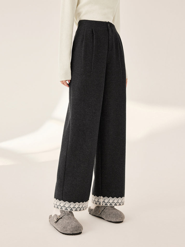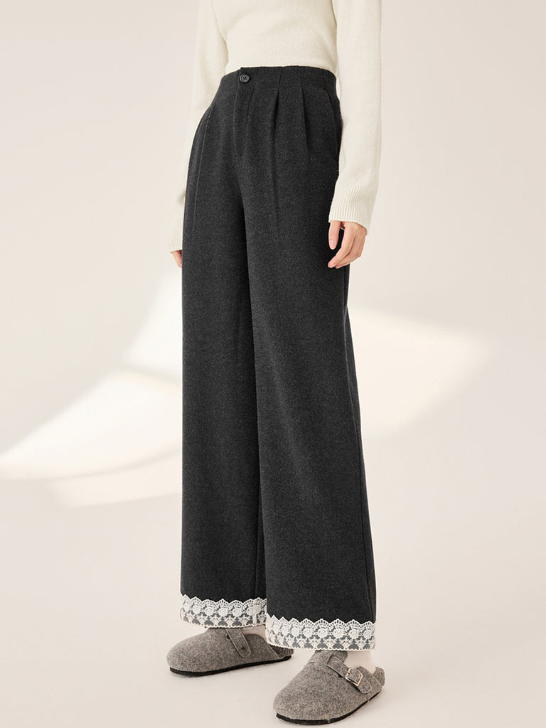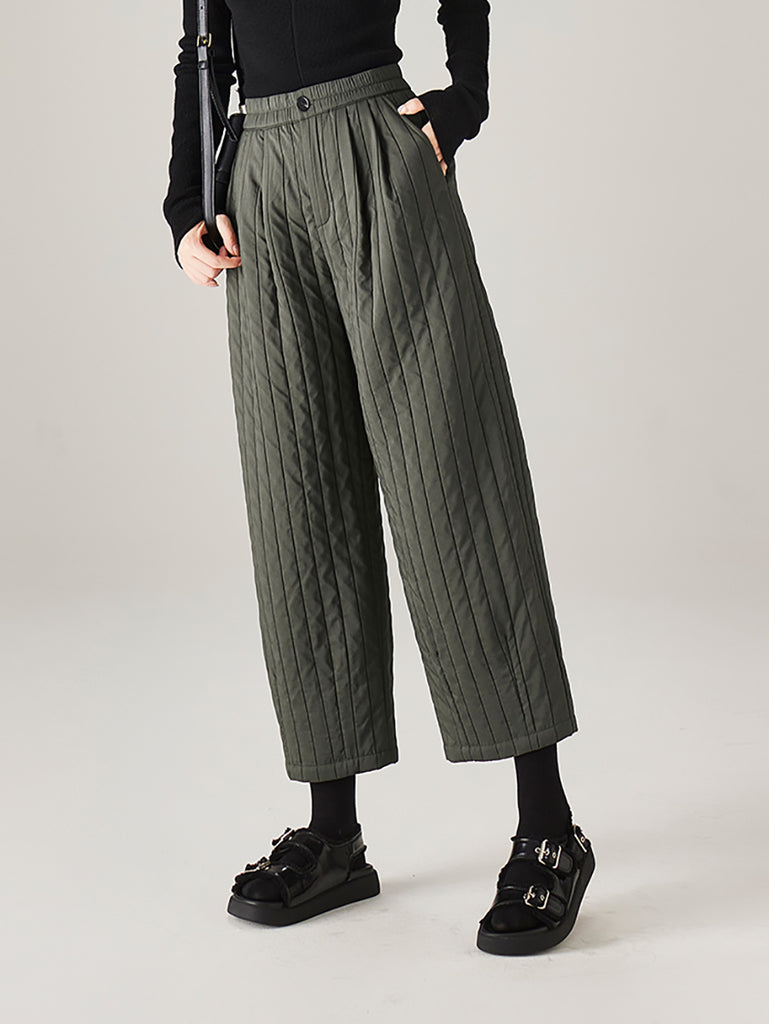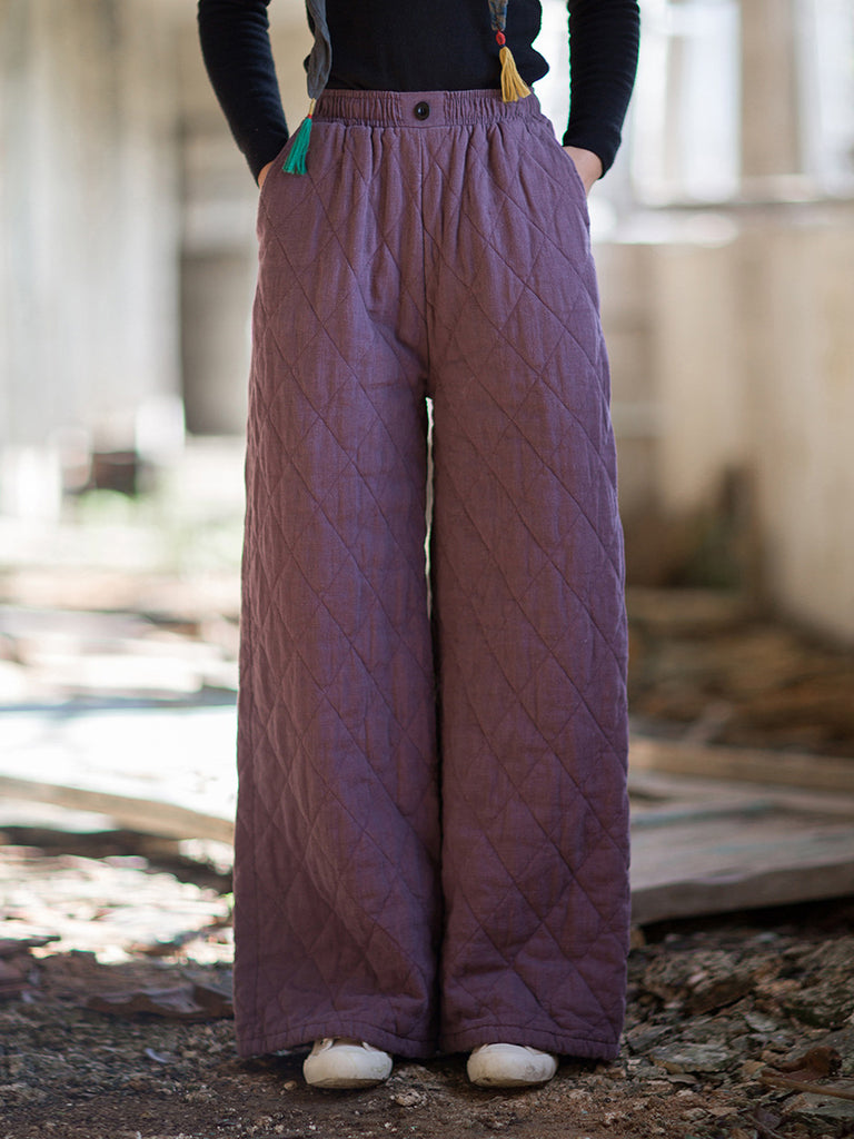 Women Winter Casual Pure Color Padded Wide-leg Pants