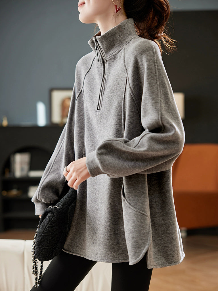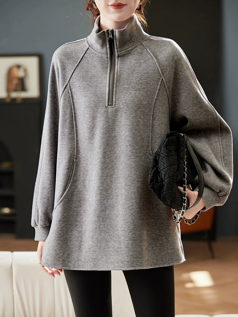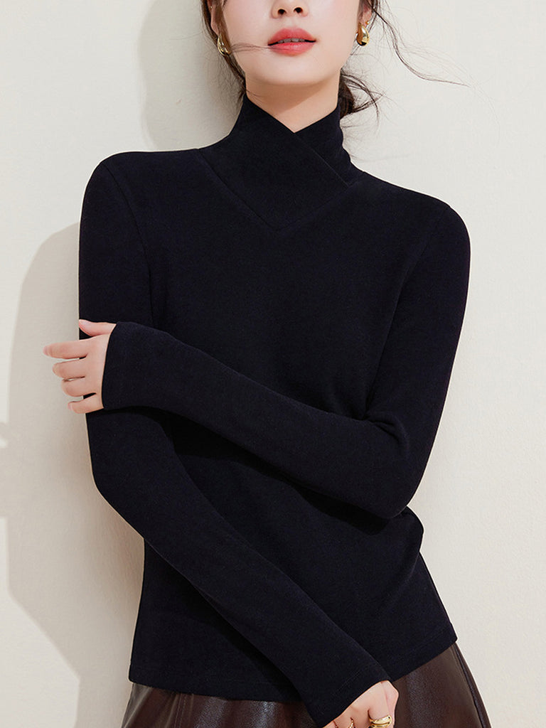 Women Casual Autumn Pure Color Stand Collar Knitted Sweater