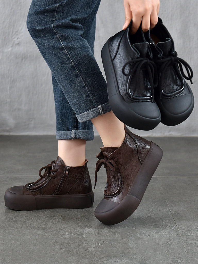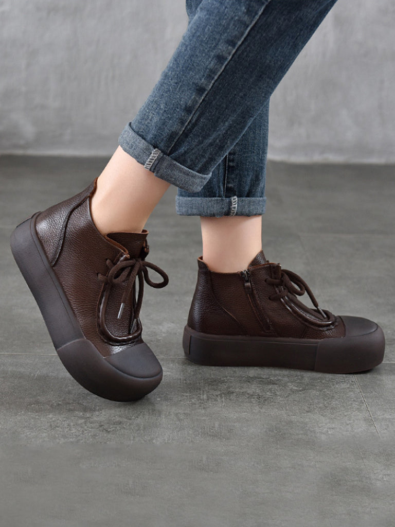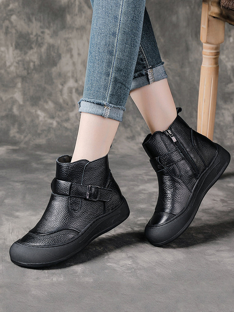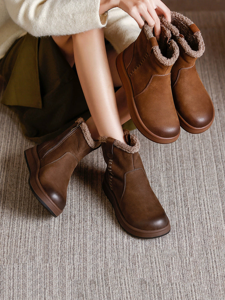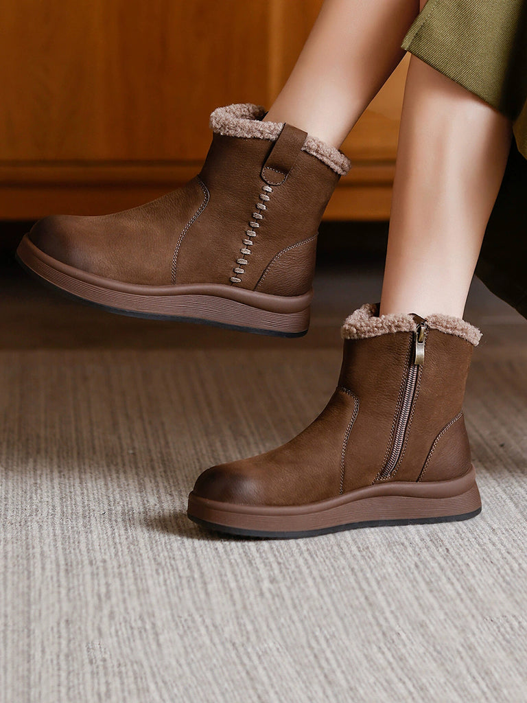 Women Winter Soft Genuine Leather Fleece-lined Flat Boots