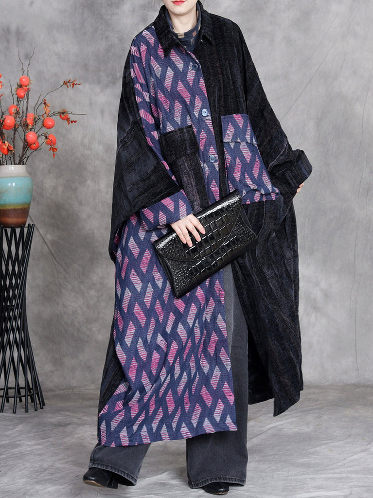 Women Winter Denim Spliced Turn-down Collar Overcoat