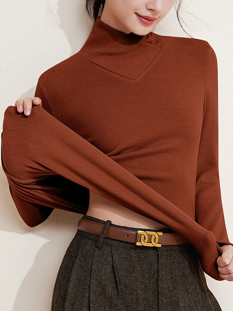 Women Winter Colorblock Stand Collar Fleece-lined Blouse
