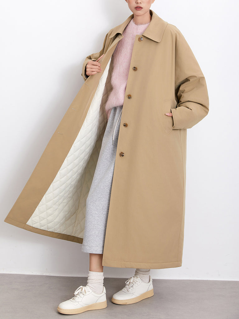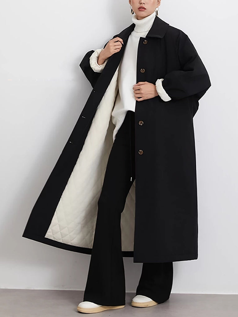 Women Vintage Winter Pure Color Turn-down Collar Padded Coat