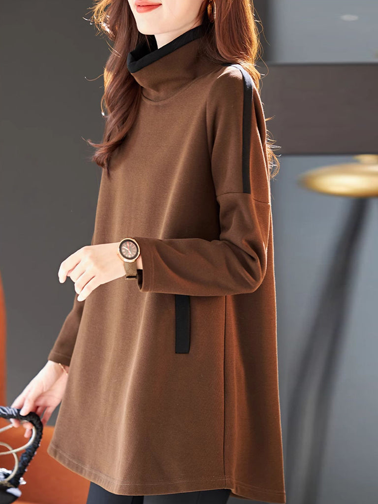 Women Autumn Casual Pure Color Knitted Turtleneck Sweater