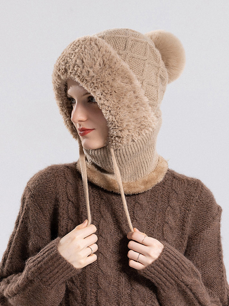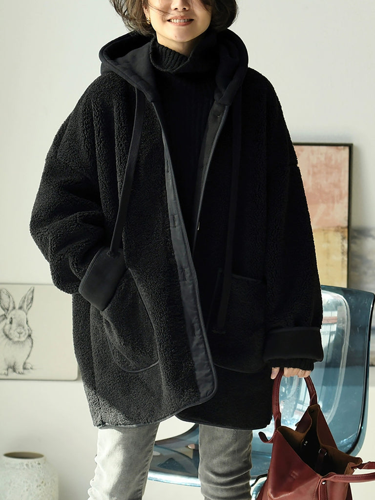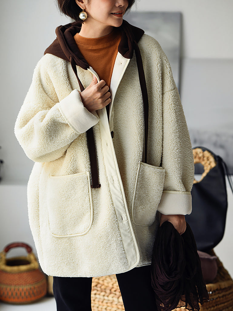 Women Vintage Autumn Pure Color Hooded Wool Sweater
