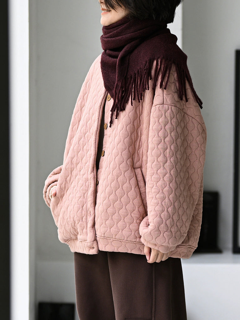 Women Winter Retro Pure Color Ramie Padded Stand Collar Coat