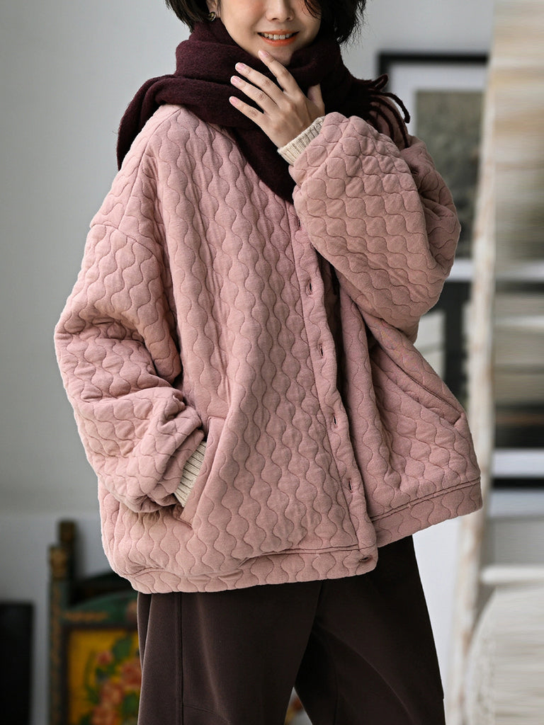 Women Vintage Winter Pure Color O-Neck Cotton Coat