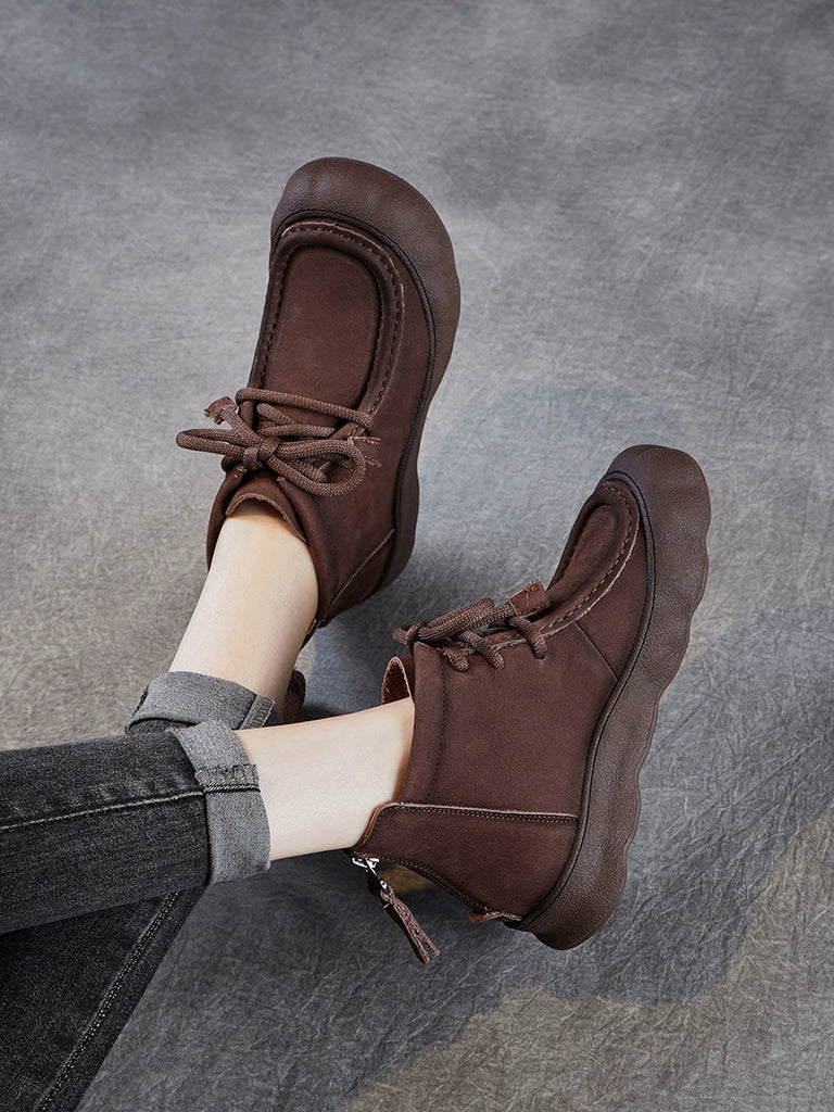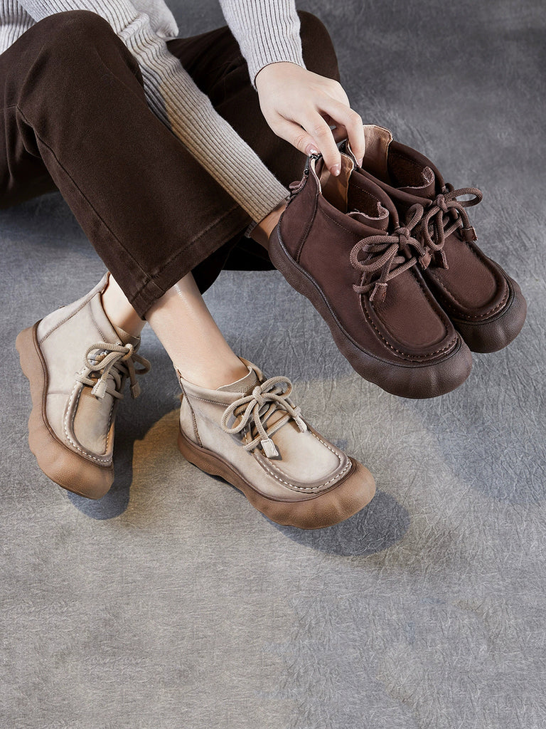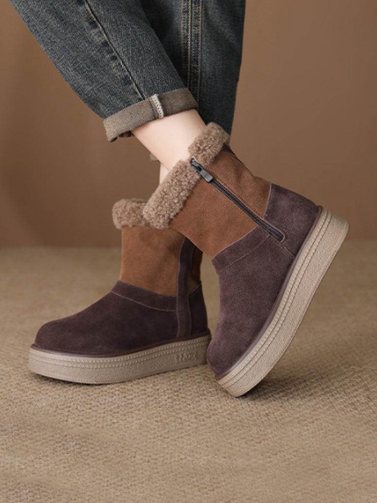 Women Winter Casual Genuine Leather Spliced Platform Boots