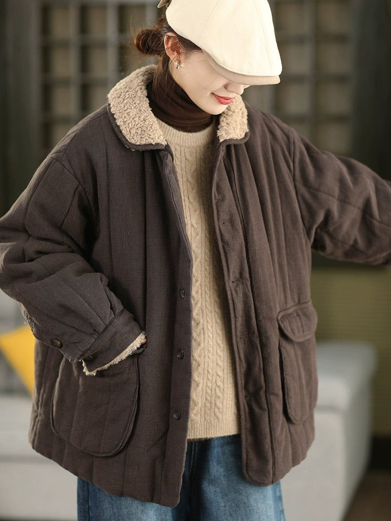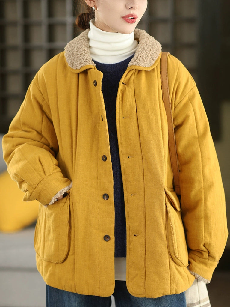 Women Vintage Winter Pure Color Turn-down Collar Coat