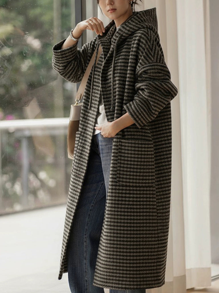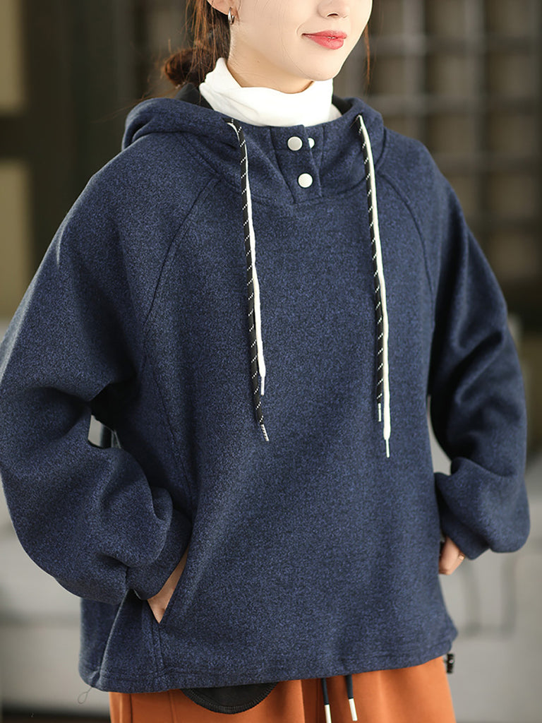 Women Winter Casual Pure Color Fleece-lined Hooded Blouse