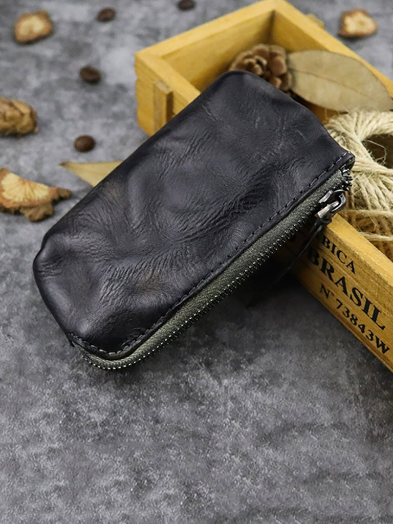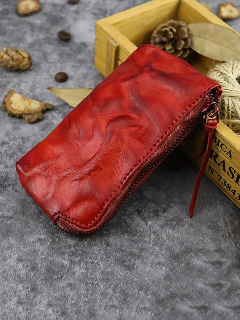 Vintage Pure Color Zipper Multifunction Leather Wallet
