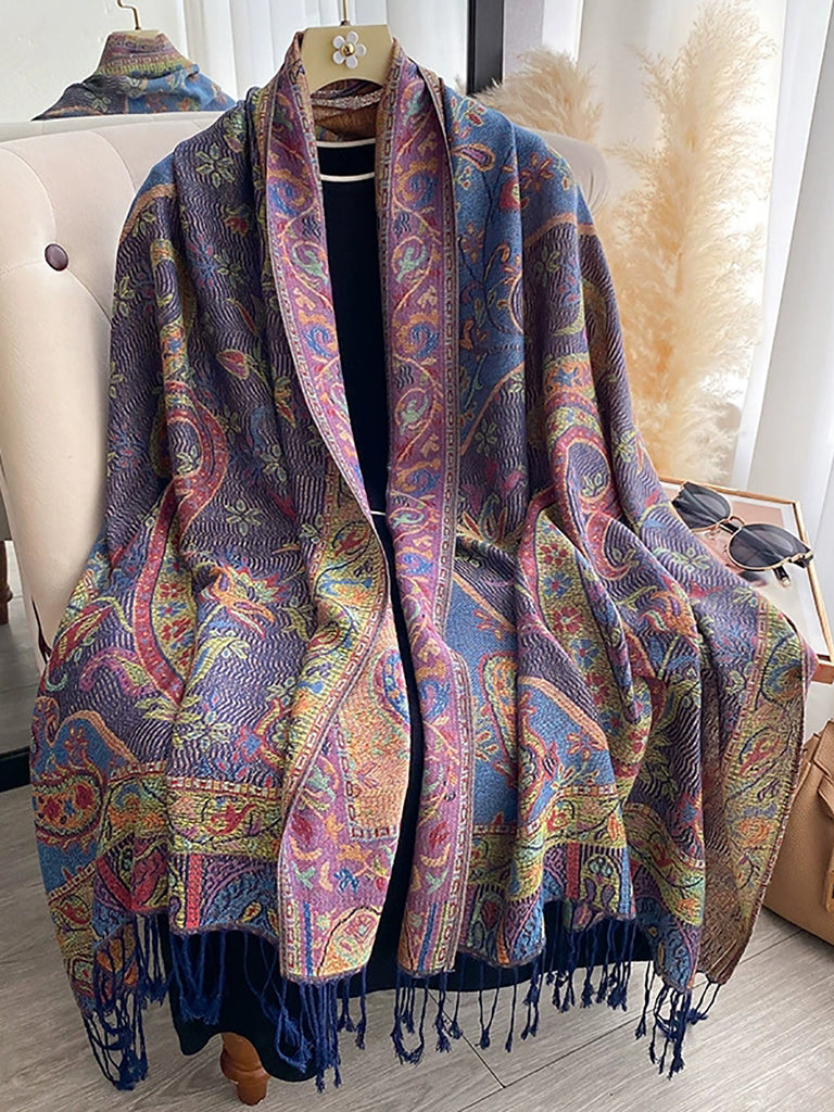 Women Winter Flower Jacquard Fleece-lined Harem Pants