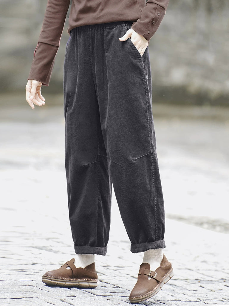 Women Winter Retro Pure Color Corduroy Thick Harem Pants