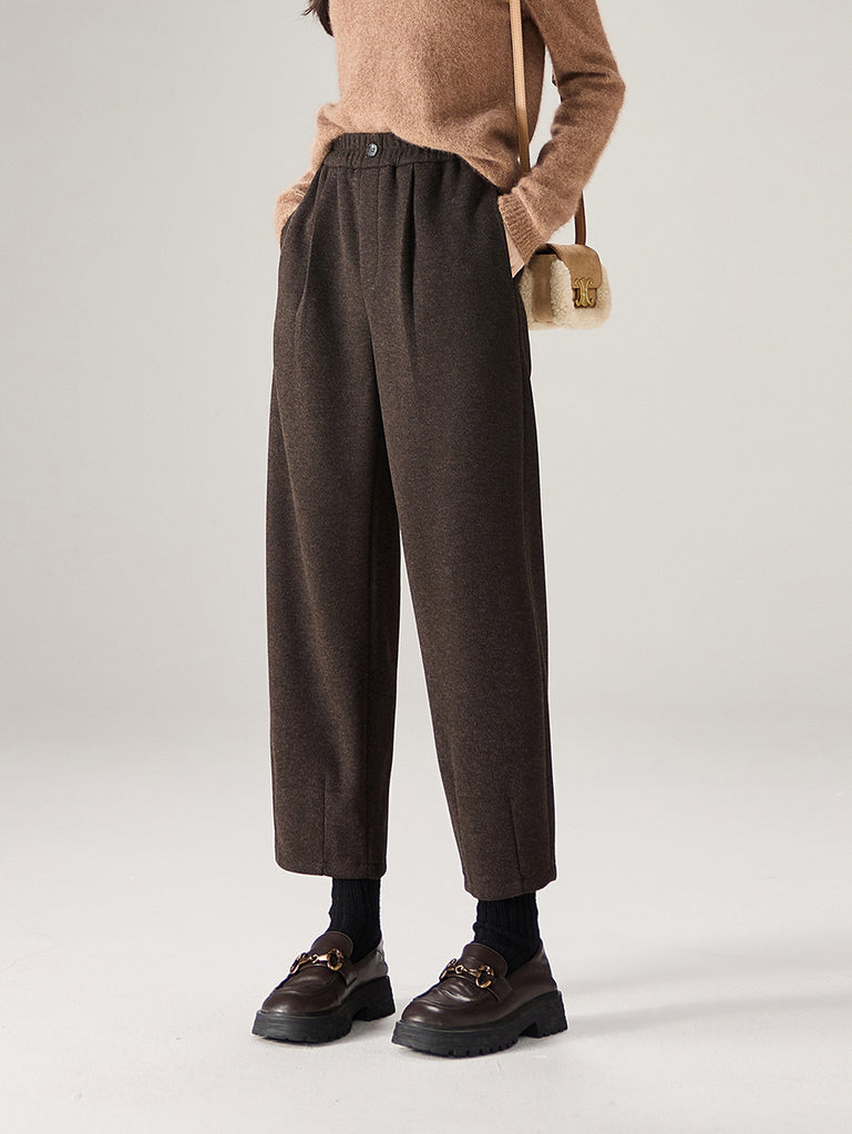 Women Winter Retro Pure Color Corduroy Wide-leg Pants