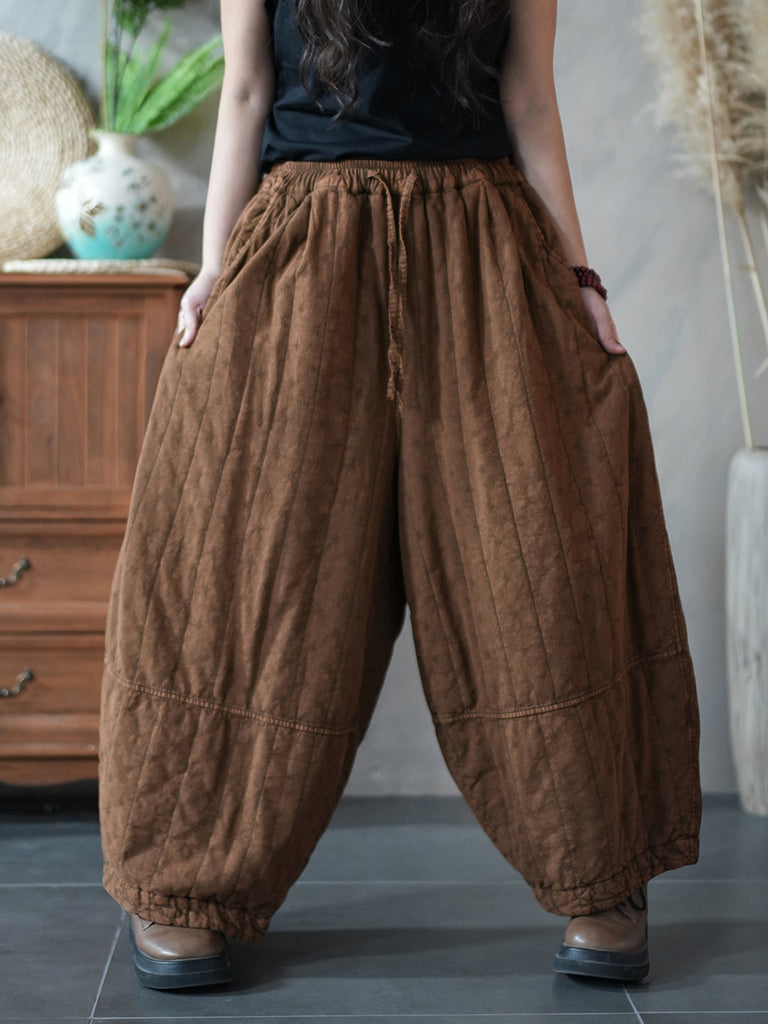Women Winter Retro Plaid 100%Cotton Padded Harem Pants