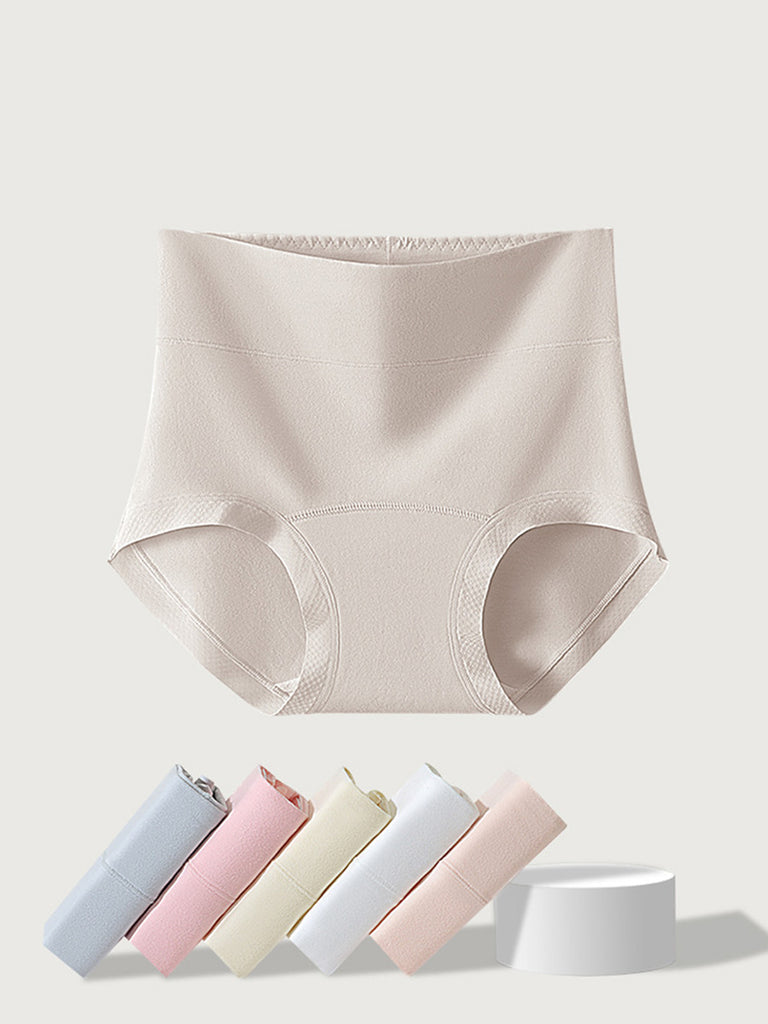 6 Pieces Women Pure Color High Waist Underwear