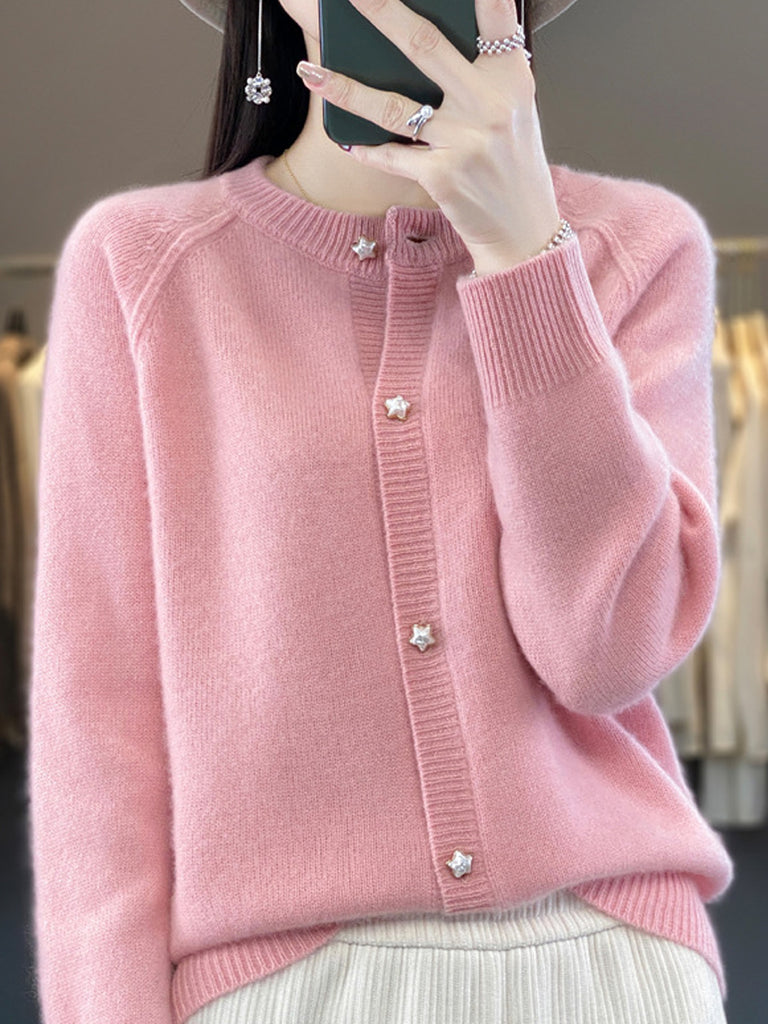 Women Autumn Casual Pure Color O-Neck Wool Sweater