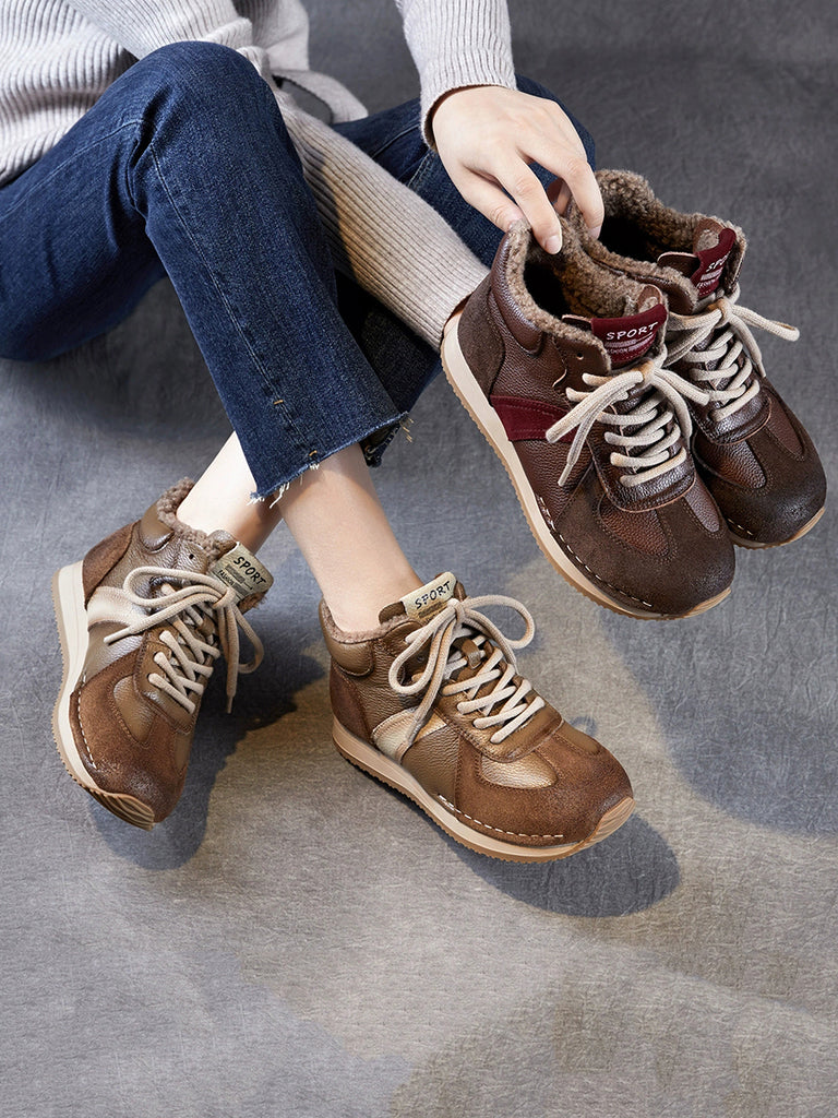 Women Winter Colorblock Leather Fleece-lined Shoes