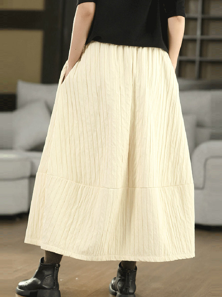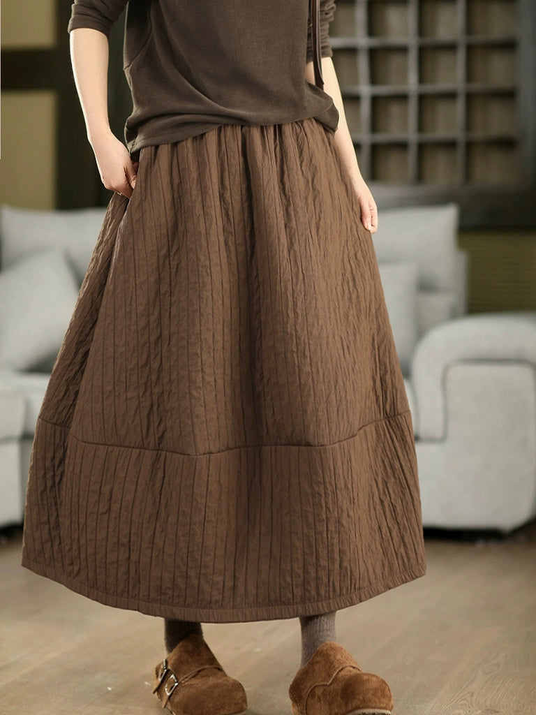 Women Autumn Vintage Pure Color A-Shape Padded Skirt