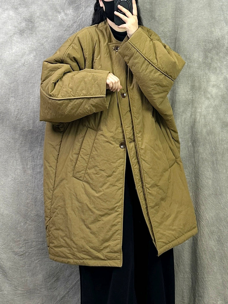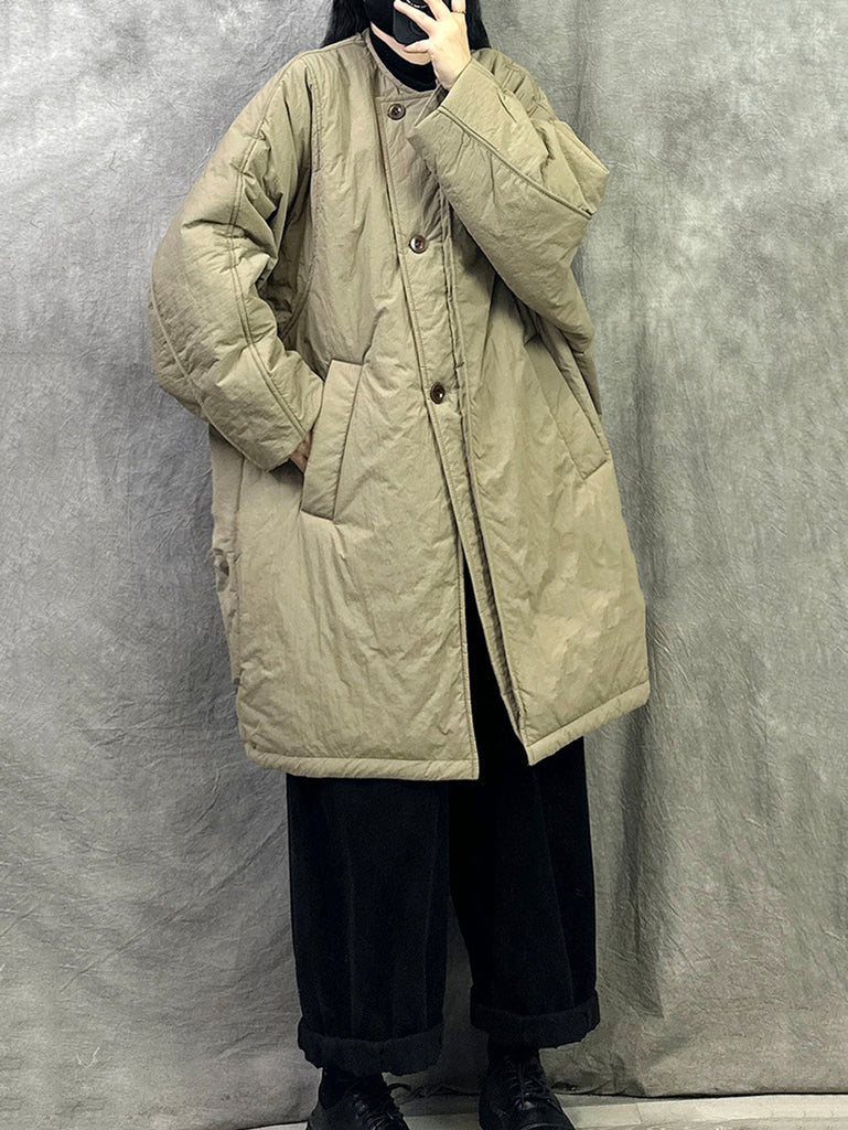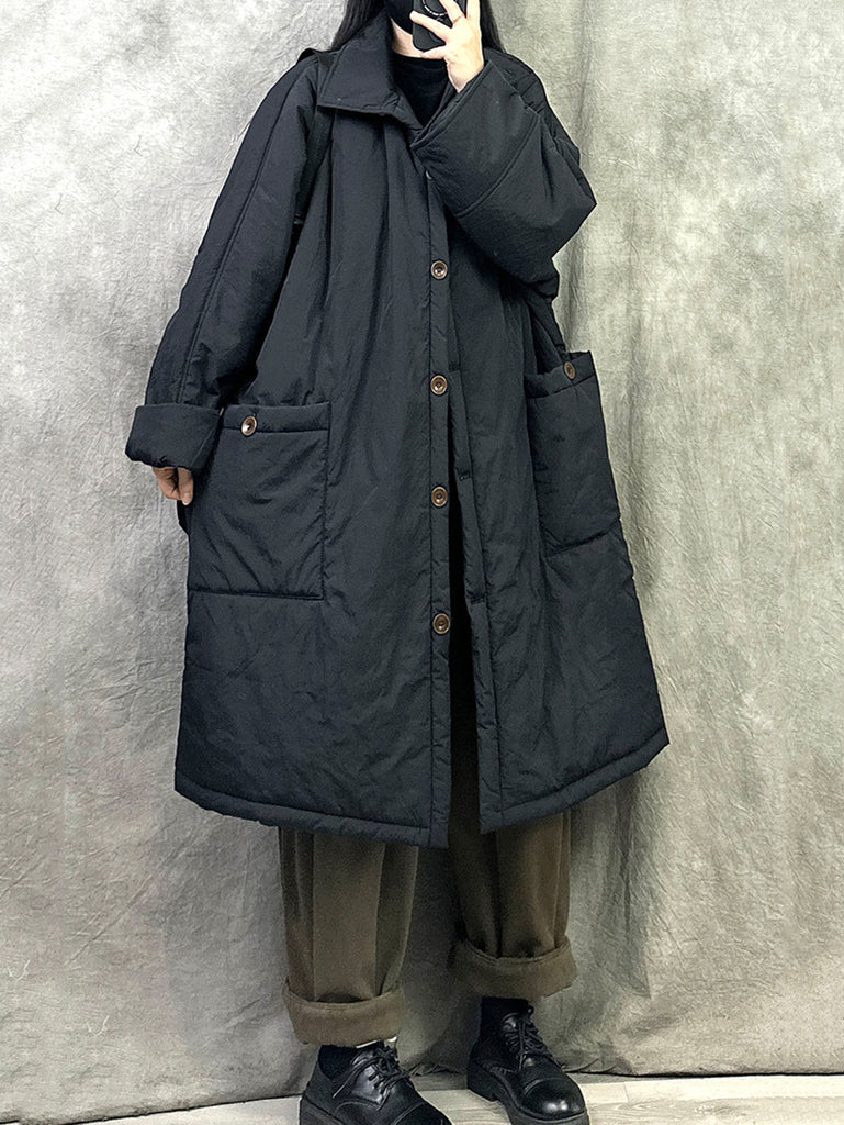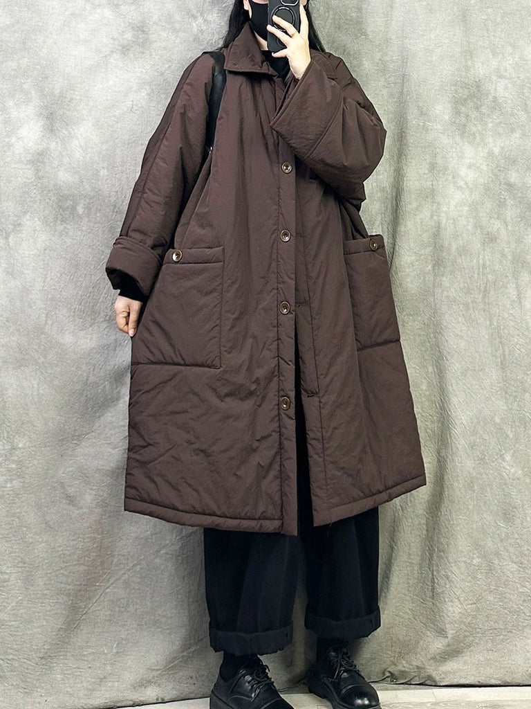 Women Winter Pure Color Padded Turn-down Collar Long Coat