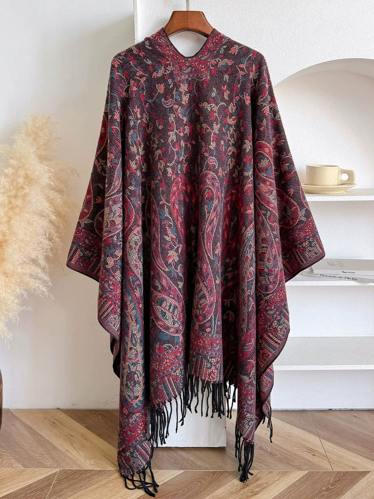 Women Winter Ethnic Flower Tassel Shawl Scarf