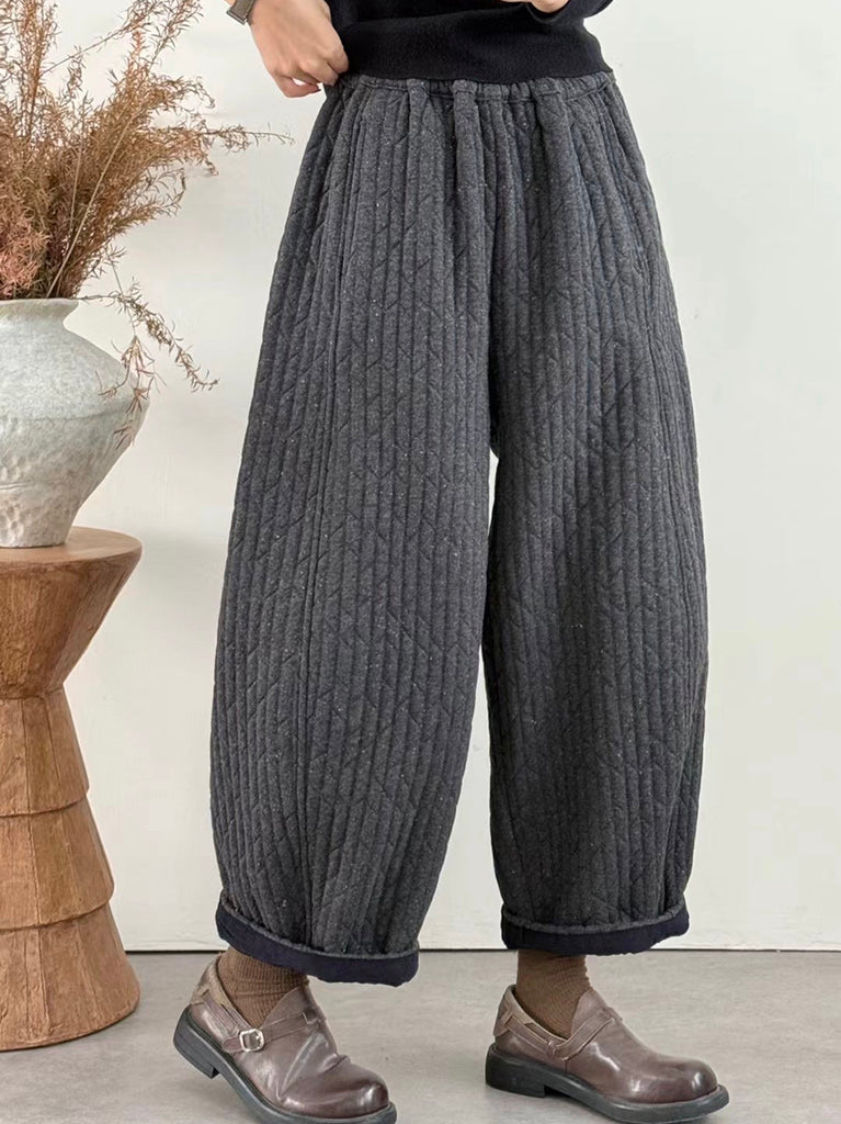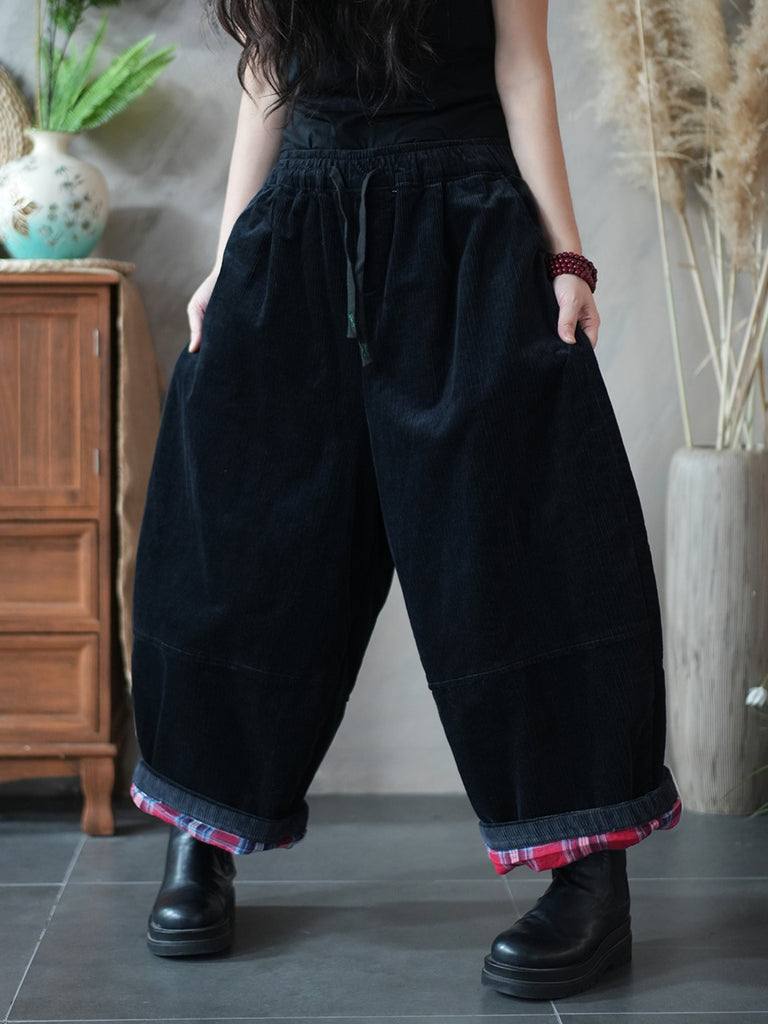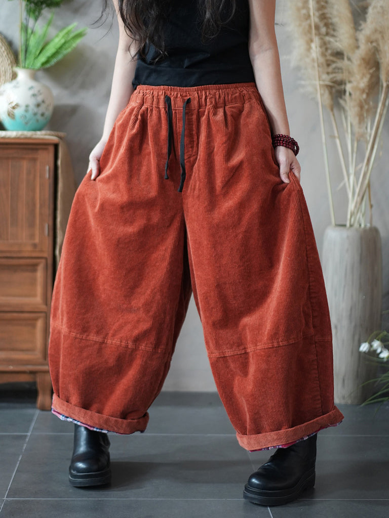 Women Winter Retro Pure Color Corduroy Wide-leg Pants