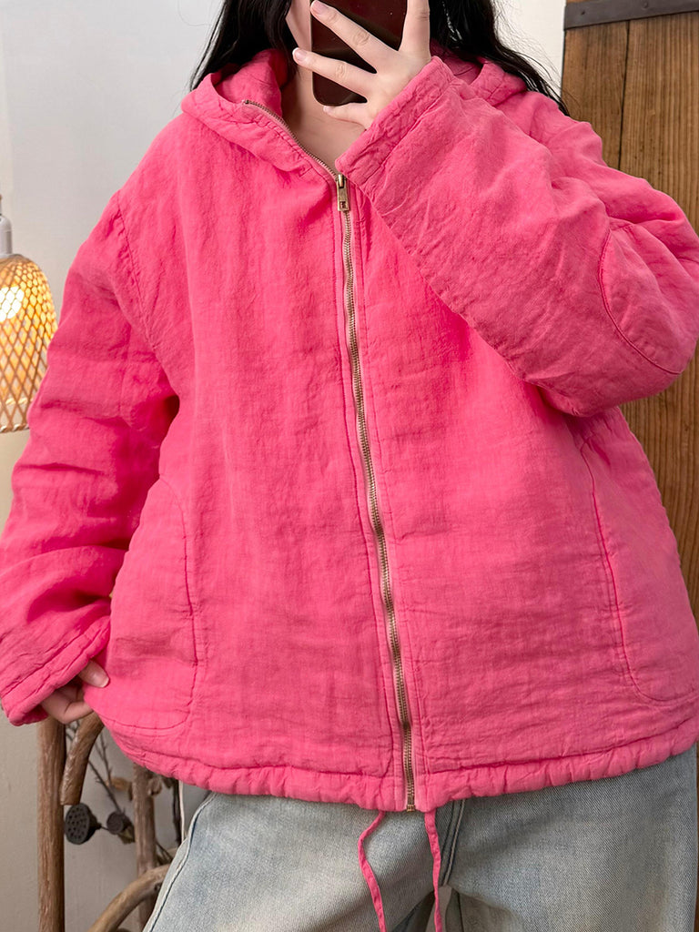 Women Autumn Retro Pure Color Linen Hooded Coat