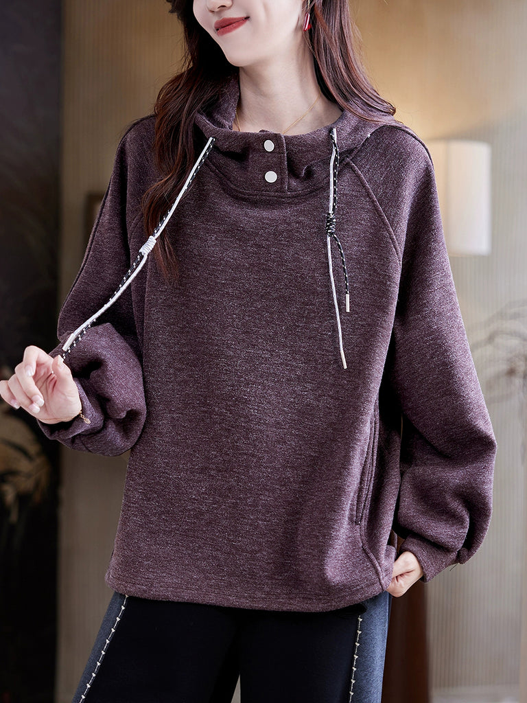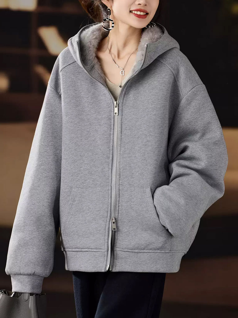 Women Winter Casual Pure Color Fleece-lined Hoodie