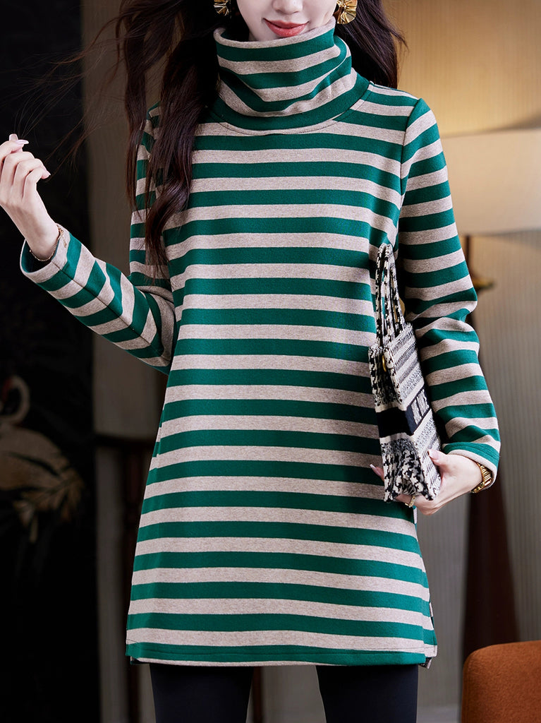 Women Winter Casual Stripe Turtleneck Blouse