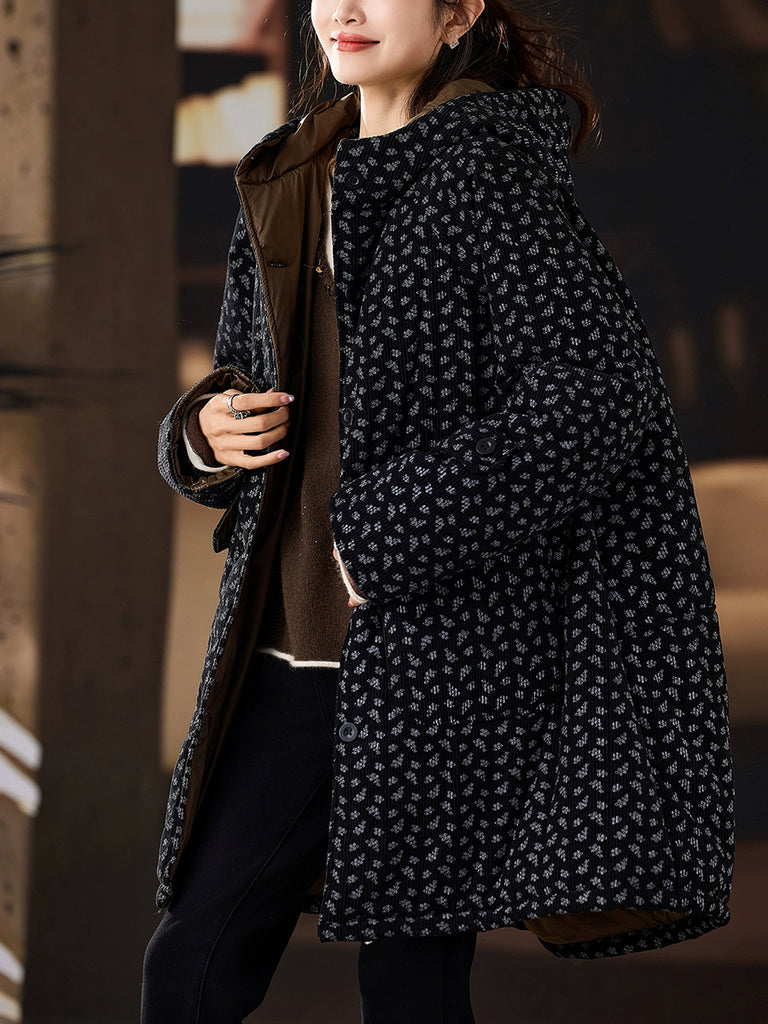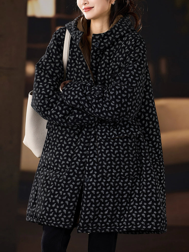 Women Winter Casual Floral Padded Hooded Coat