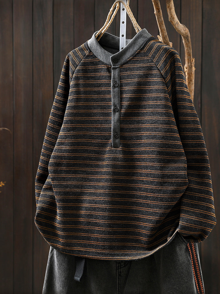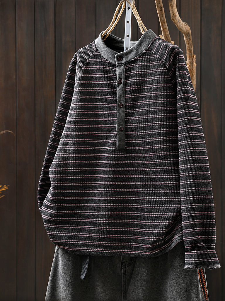 Women Autumn Retro Stripe O-Neck Blouse