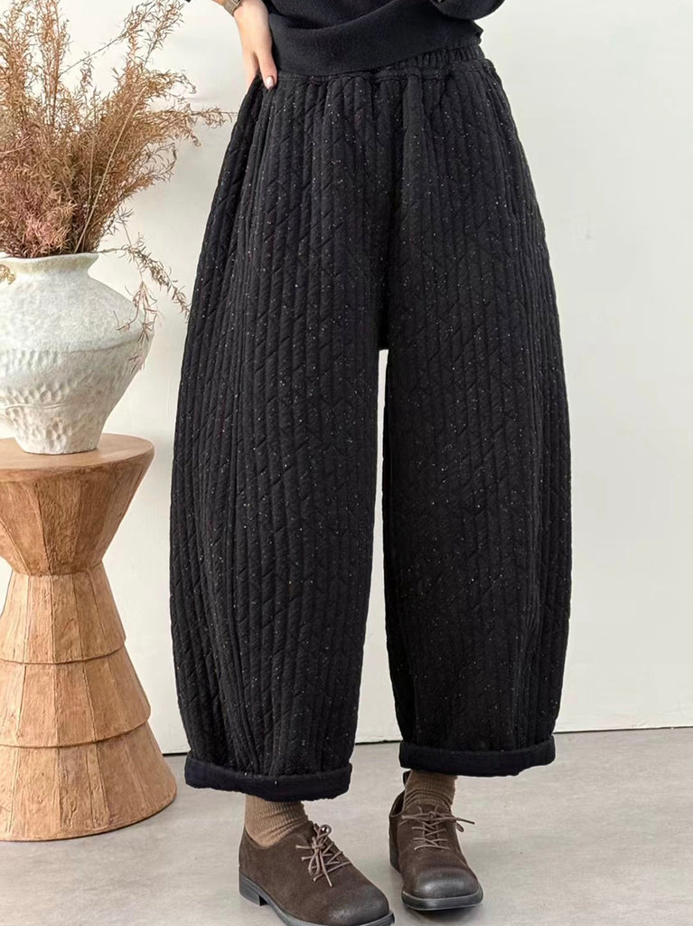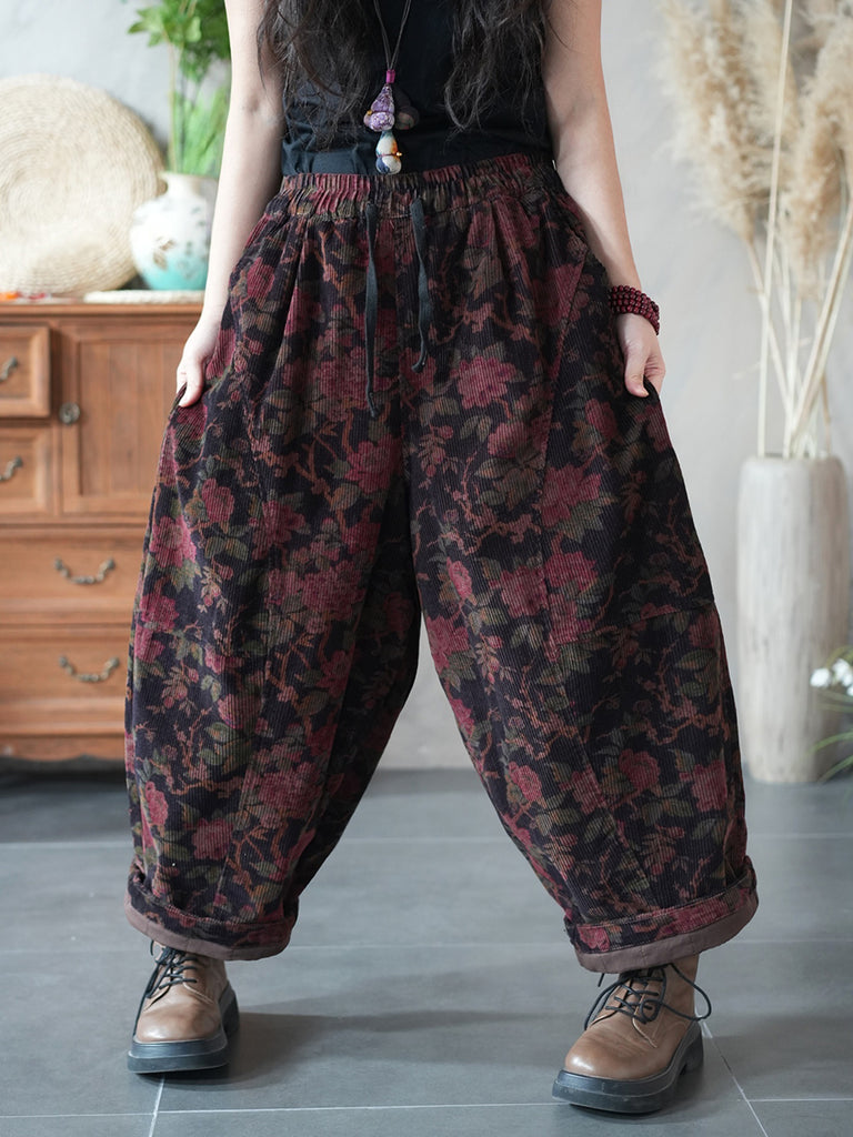 Women Winter Retro Flower Corduroy Padded Harem Pants