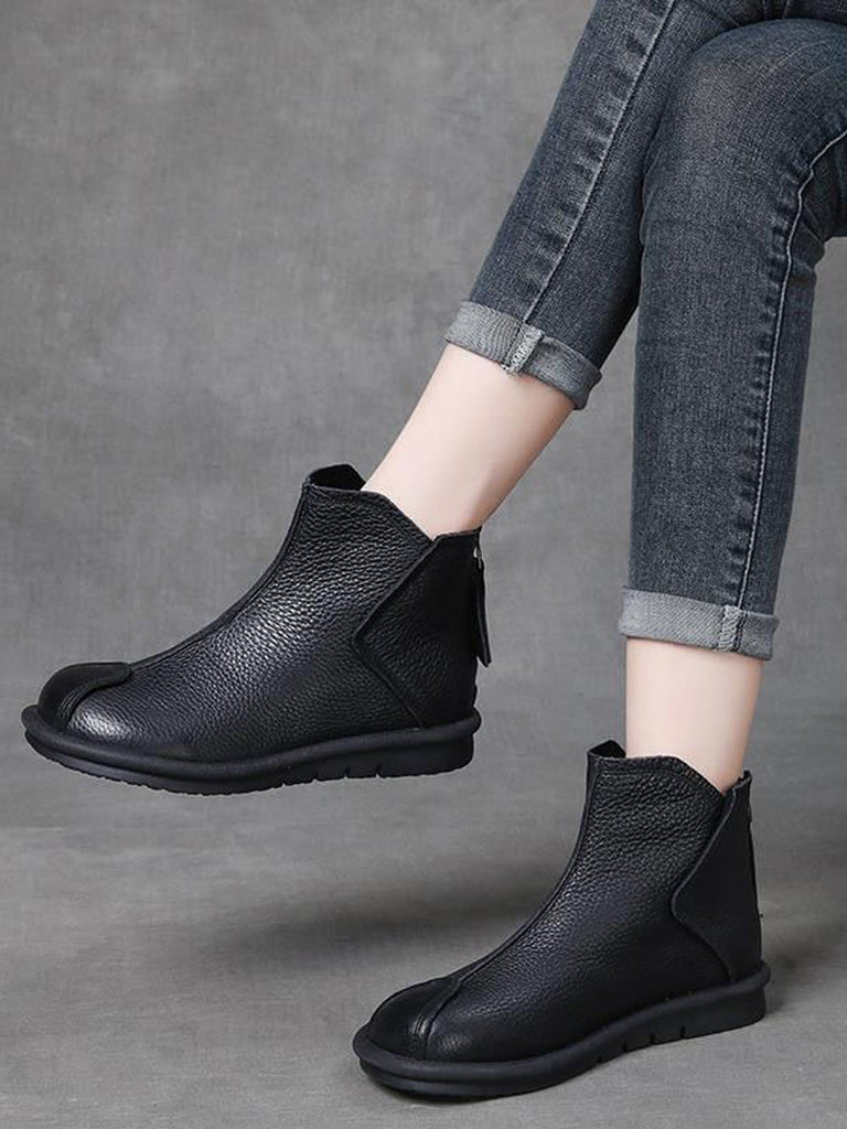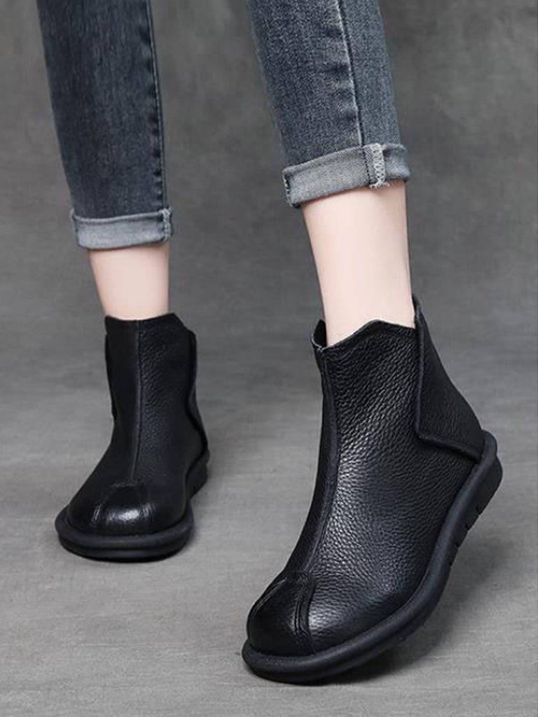 Women Retro Genuine Leather Spliced Ankle Boots