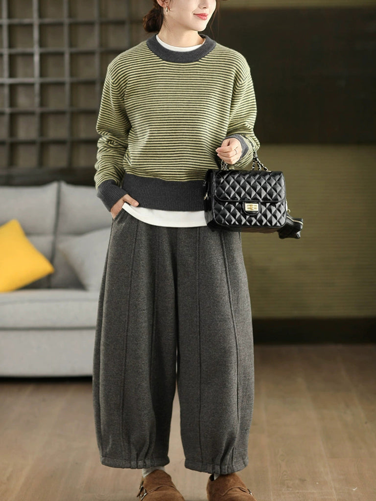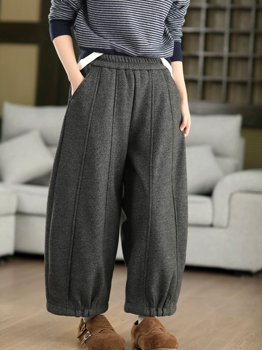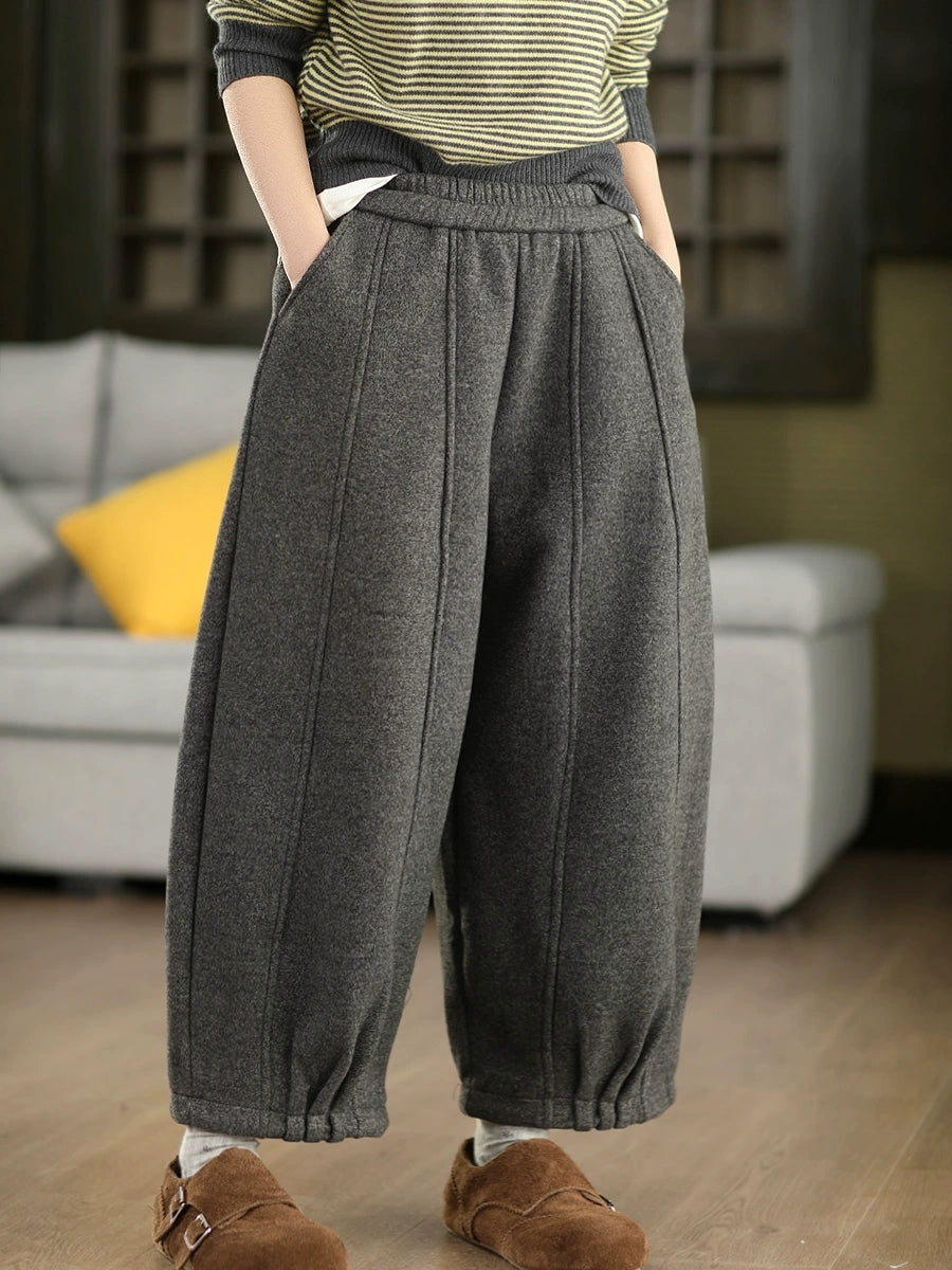 Women Winter Retro Spliced Fleece-lined Harem Pants