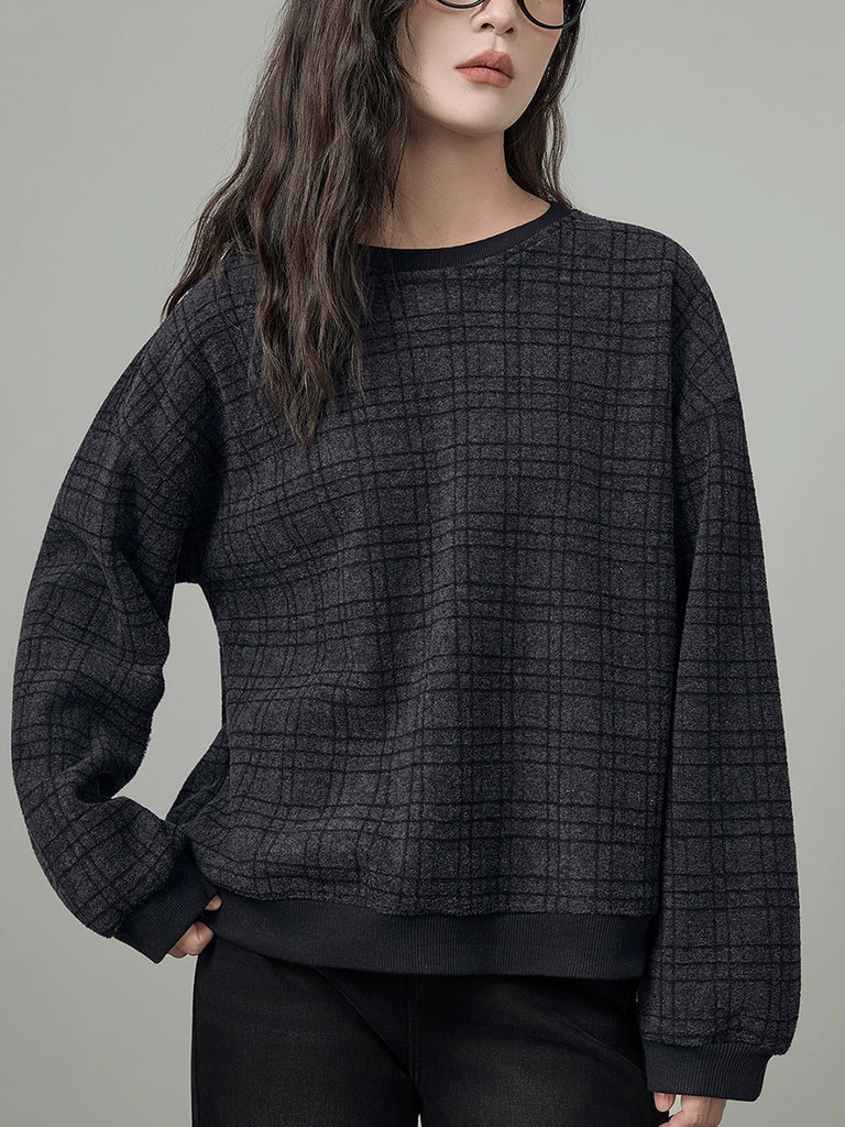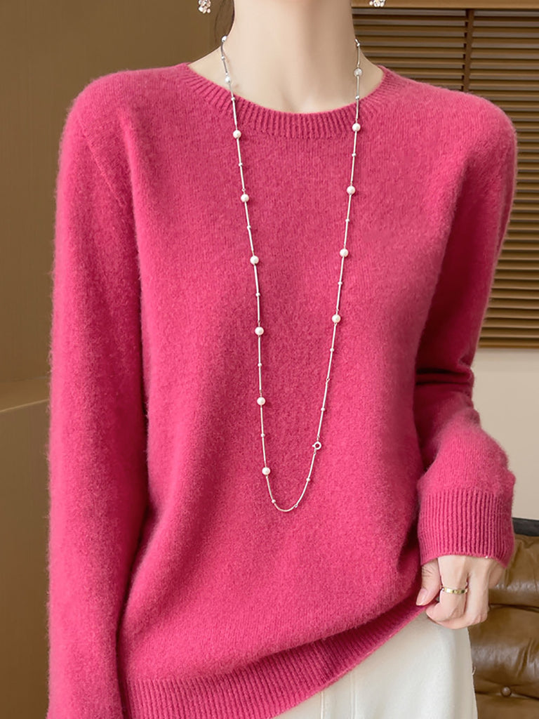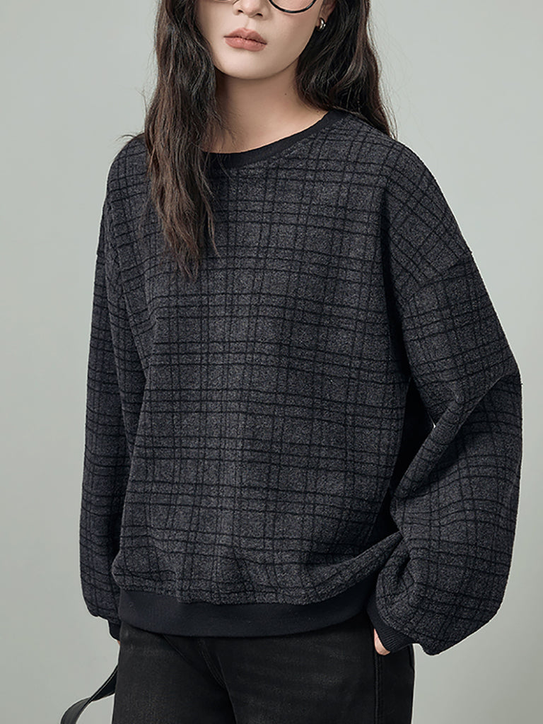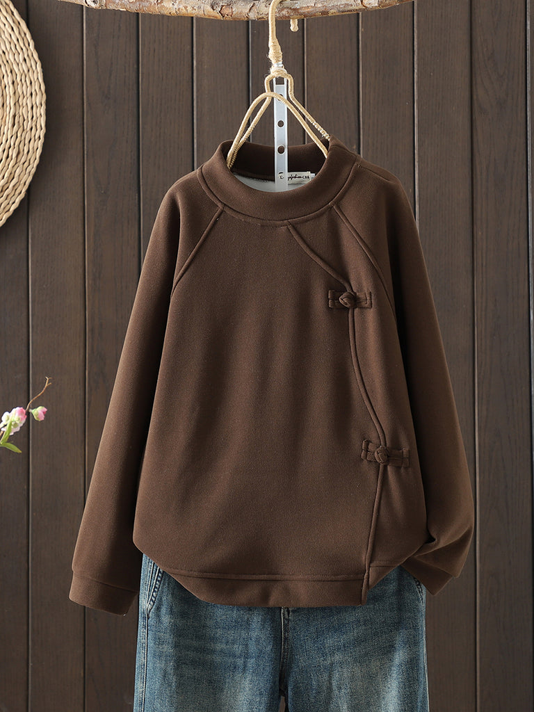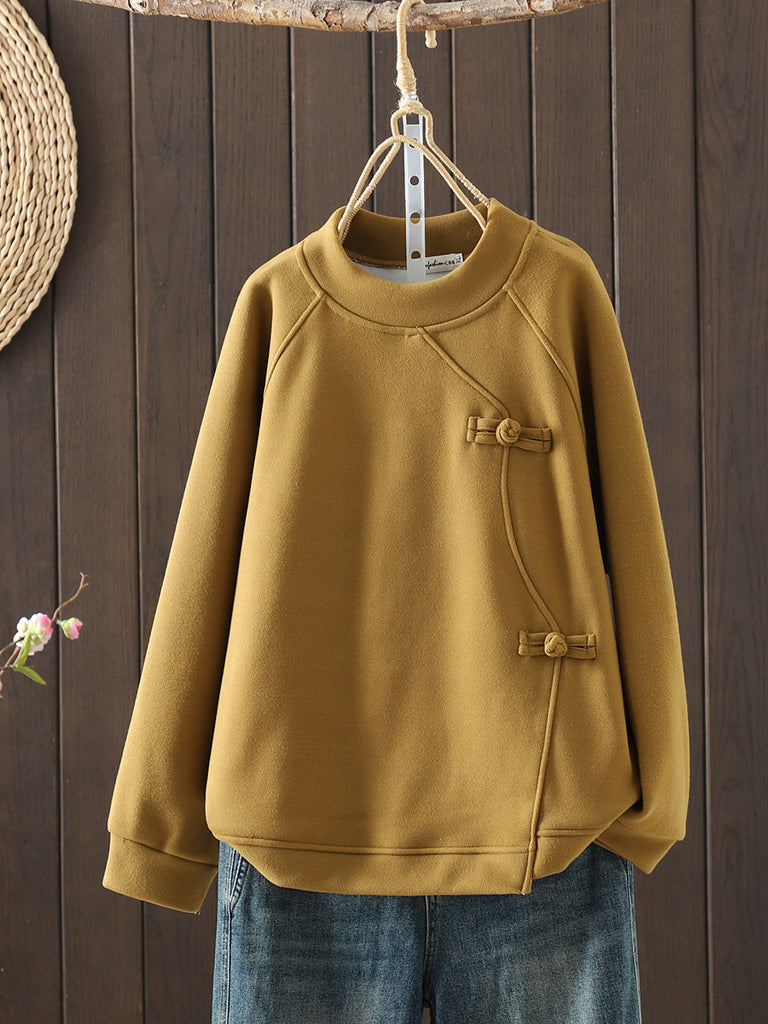 Women Winter Pure Color Fleece-lined O-Neck Blouse
