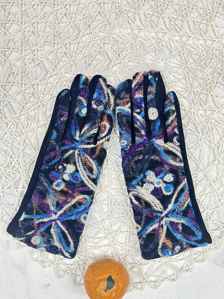 Women Ethnic Flower Knitted Warm Cycling Gloves